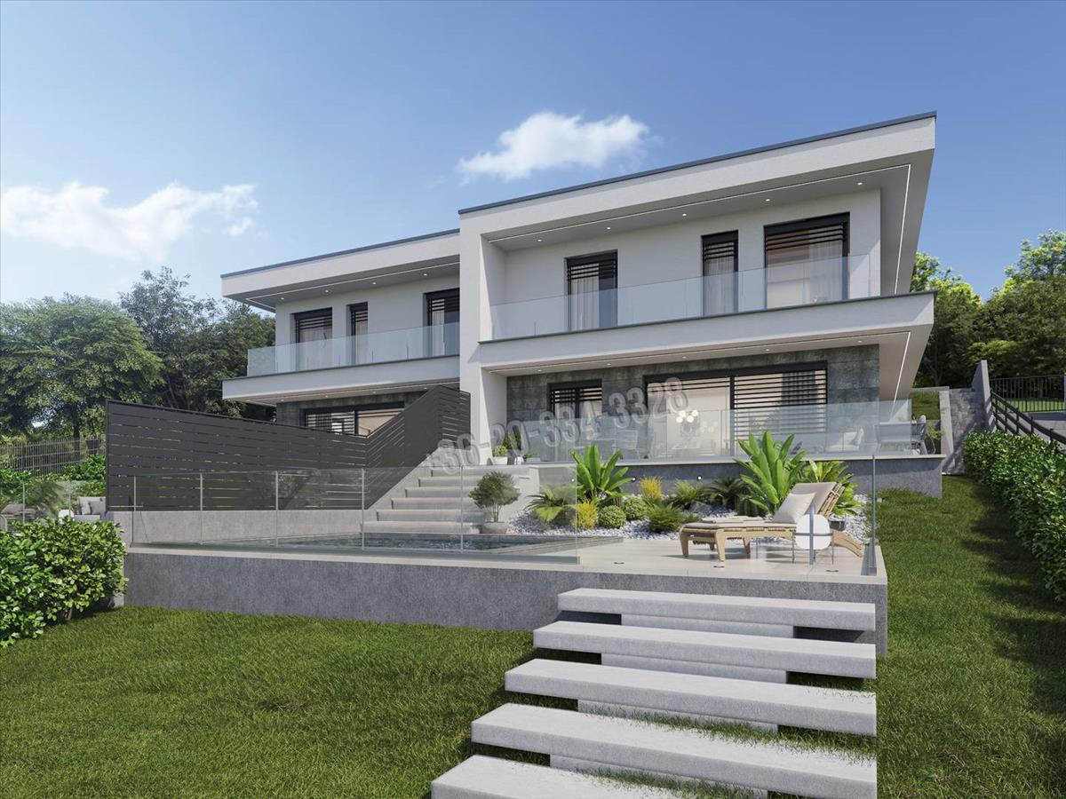 Eladó a III. kerületben, Péterhegyen új építésű, energiatakarékos, örökpanorámás, kétszintes, nettó 150 nm -es ikerház, hatalmas üvegkorlátos teraszokkal, saját 500 nm telekkel.