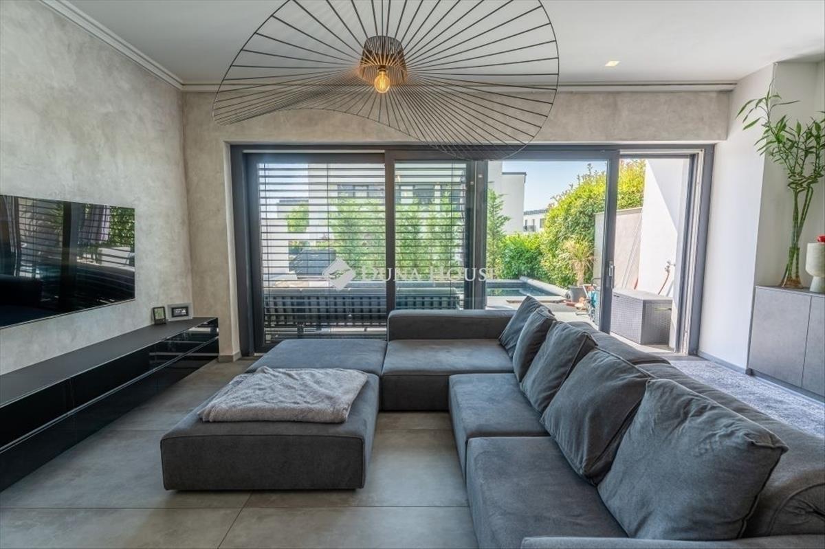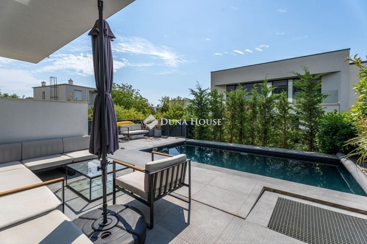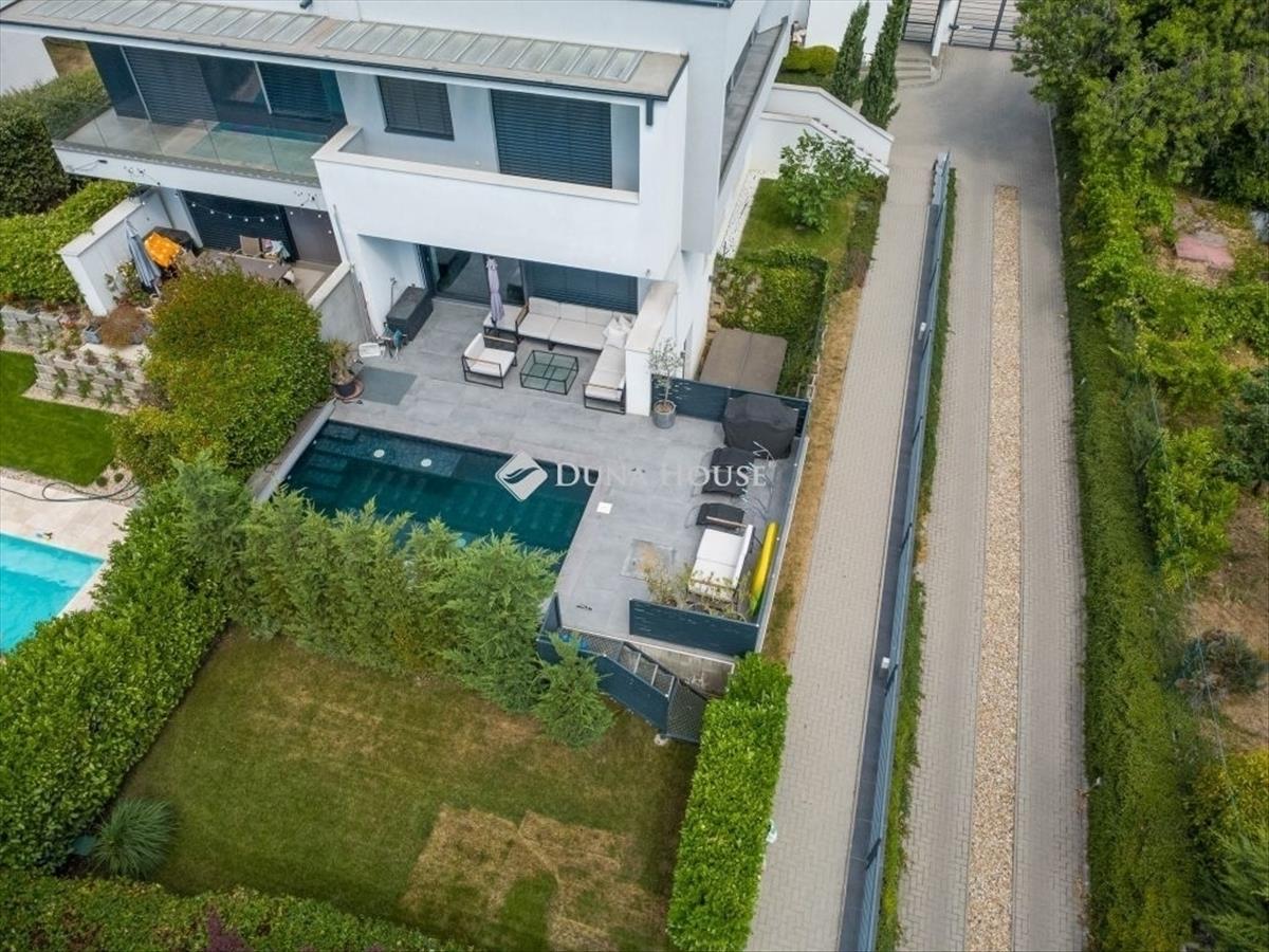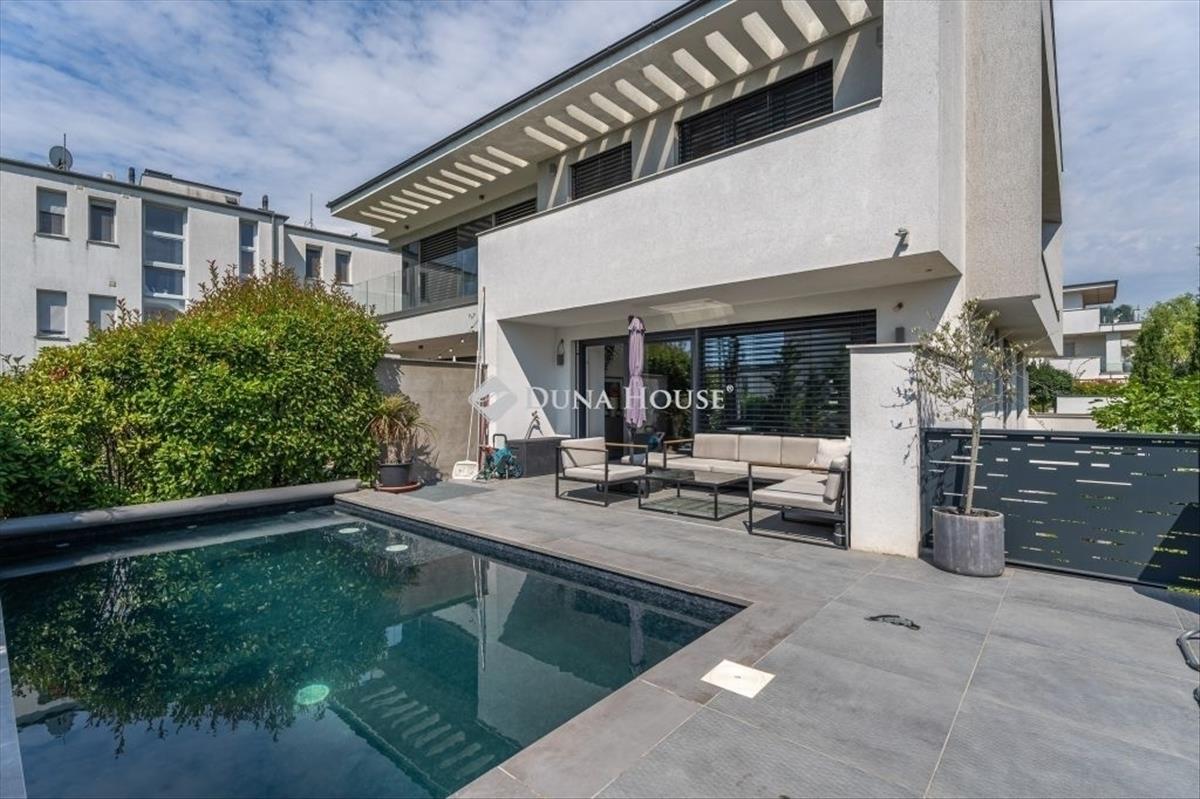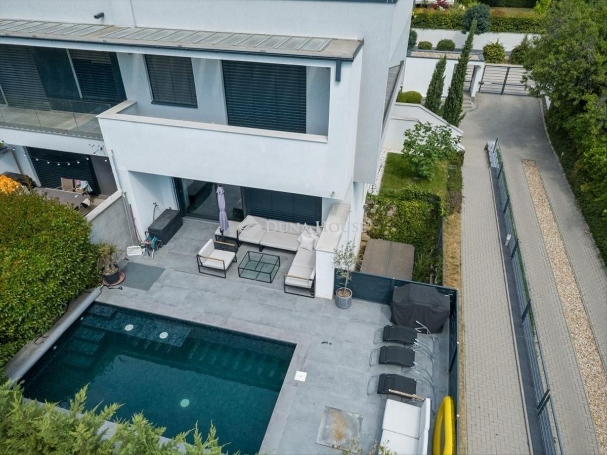 Minimál luxus Madárhegyen saját medencével, jakuzzival, dupla garázzsalEz a háromszintes minimál ikerházfél a XI. kerület egyik legszebb részén, Madárhegyen kínálja azt az életminőséget, amit a tudatos vásárlók keresnek de ritkán találnak meg. 180 M² lakótér, 4 hálószoba, 3 fürdőszoba, fűthető medence, jacuzzi, dupla garázs de ennél sokkal többről van szó. Az otthon minden eleme tudatosan van megkomponálva: lebegő acél lépcső, gránit konyhasziget, design világítás, smart home rendszer, elektromos zsalúziák, hangszórók beépítve. a terasz és a nappali szinte egybeolvad, a fűthető medence, a gondozott kert és a jakuzzi azonnal átváltják a hétköznapot pihenéssé. a konyha a márkás gépekkel és 240×140-es gránitszigetével nemcsak látványos, hanem praktikus is reggelik, borozós esték, gyerekzsúrok - mindenre is alkalmas. Az emeleten a három hálószobához saját teraszkijárat tartozik, a fürdők pedig színvonalas kivitelezéssel, prémium anyaghasználattal készültek márványpult, beépített bútorok, dupla mosdók, minőségi szerelvények. a pinceszinten egy wellness rész is kapott helyet: szauna előkészítés, jakuzzihoz vezető intim terasz. Továbbiakban ezen a szinten található külön vendégszoba, mosókonyha, tároló, dupla garázs. Minden funkciója a kényelmet és az átgondolt mindennapokat szolgálja. Ez az ingatlan nem csak felszereltségben kiemelkedő, hanem hosszú távon is értékálló választás! Ha megszólított, keress bizalommal és nézd meg személyesen. Hitel.hu - Hasonlítsa össze a bankok lakáshitel ajánlatait