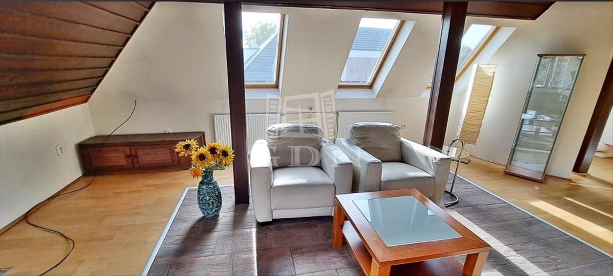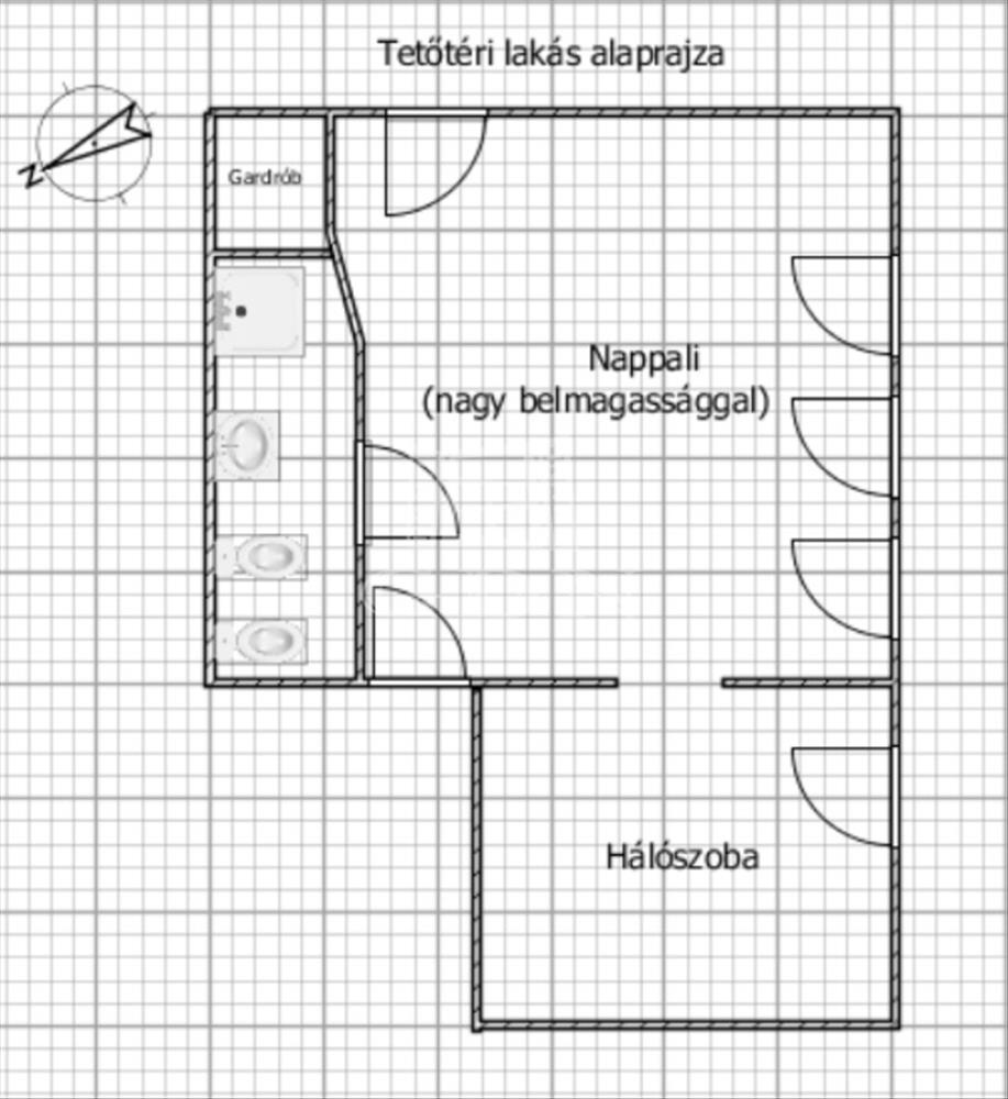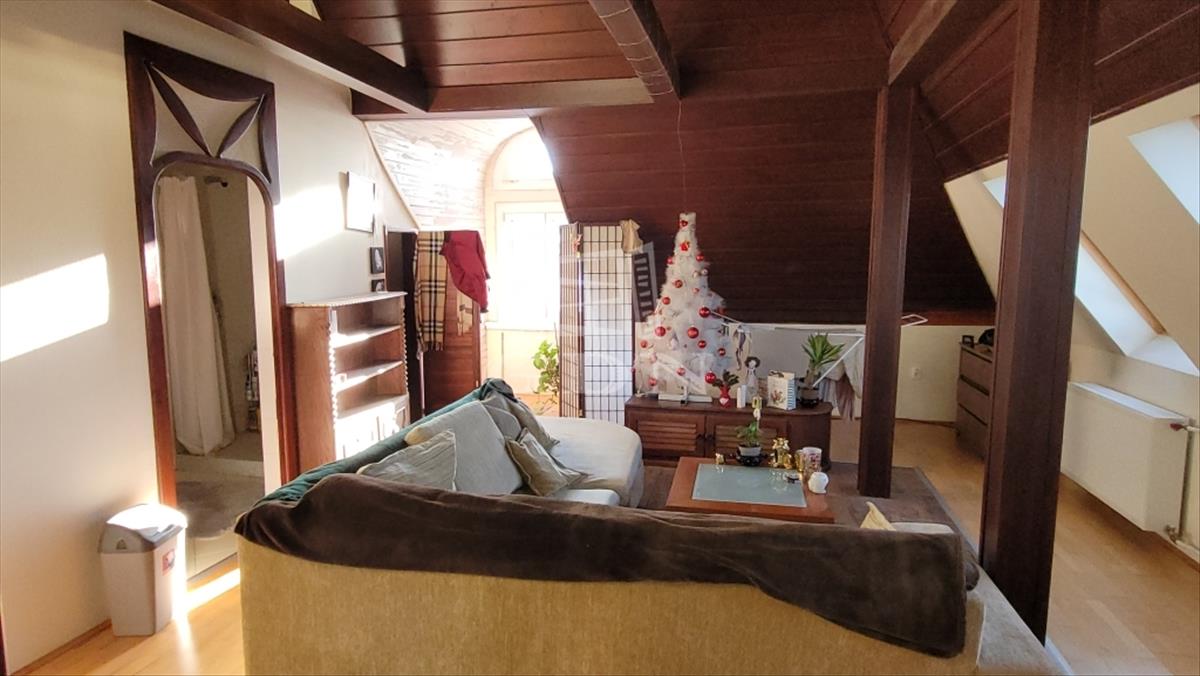 - Tetőtér (nettó 50 nm): nagy belmagasságú tetőtér, nappali és egy hálószoba, gardrób, fürdőszoba.