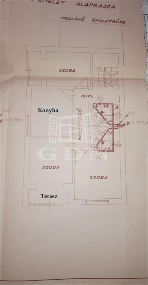 - Emelet (80 nm): teljesen felújított lakás, 3 szoba, erkély, wc, konyha, fürdőszoba WC-vel.