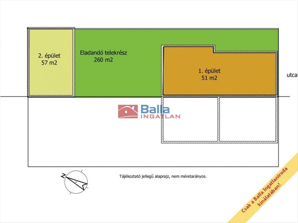 A telken további 2 épület található, ugyanakkor az eladni kívánt ingatlan rész teljesen különálló, külön bejárattal, közművekkel és Használati Megosztással rendelkezik. a telek rajzon a zölddel jelölt telek és két db sárga házrész együtt eladó.