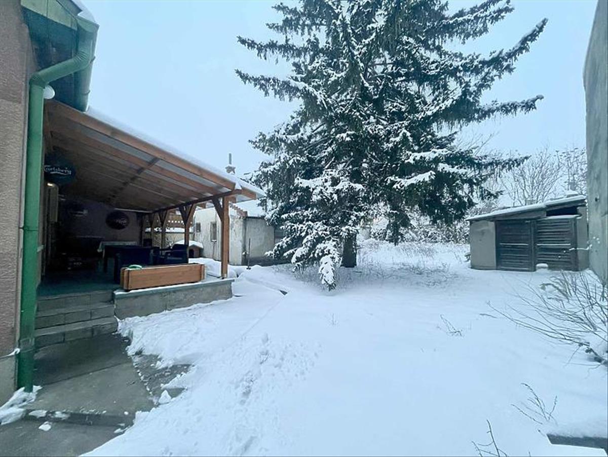 A 2 generációs családi házból leválasztott egység felújítandó. a földszinten egy nappali, étkezős konyha, kamra, fürdőszoba, külön mosdó található és a lépcsőfeljáró alatti kis dolgozószoba található. a tetőtérben 3 hálót és egy fürdőt alakítottak ki. Saját villanyórával rendelkezik. a fűtést a saját pincében elhelyezett vegyestüzelésű kazán és egy gázkazán is biztosíthatja, a melegvízről bojler gondoskodik. Elektromos tolókapu nyílik az udvarra, ahol autóbeállási lehetőség biztosított, de garázs is található az udvarban