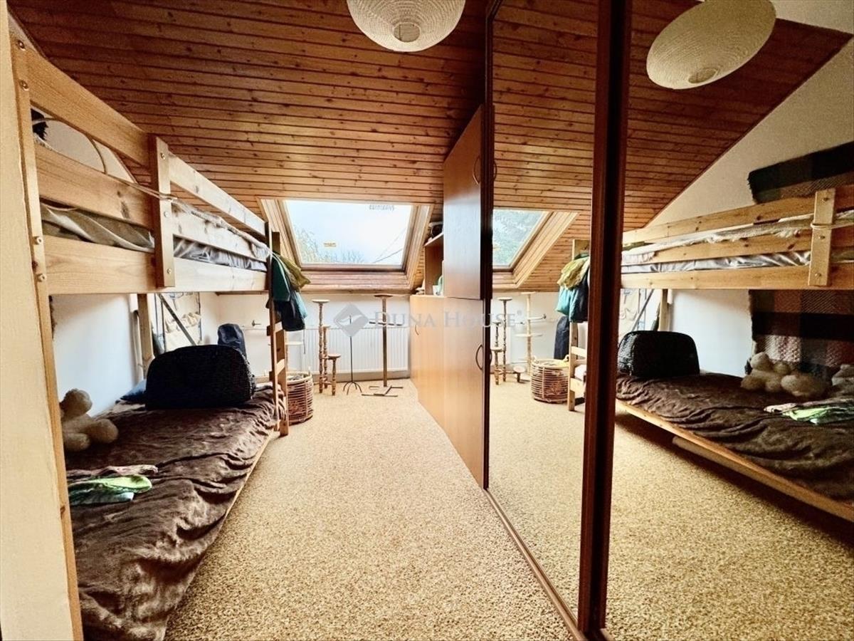 Eladó egy kiváló adottságokkal rendelkező, tágas és jól élhető ikerház-fél Árpádföld egyik legkedveltebb, kertvárosi utcájában. a 462 nm-es telken álló ingatlan csendes, rendezett környezetben található, ahol a családi házas övezet nyugalma és a környék kiváló infrastruktúrája egyszerre biztosítja a kényelmes mindennapokat. Tágas lakóterek, praktikus kialakításAz ingatlan három szinten összesen 195 nm-t kínál, melyből 130 nm a lakótér, további 65 nm pedig a szuterén, belső lépcsőn megközelítve. a ház elrendezése kifejezetten ideális családok számára, hiszen a nappalin kívül négy különálló szoba biztosítja a kényelmes privát tereket. Földszint:- Tágas, világos nappali közvetlen terasz- és kertkapcsolattal- Külön konyha étkezővel- Fürdőszoba wc-vel- Kamra- Kis dolgozószoba vagy hálóEmelet:- Három külön nyíló szoba (16 + 16 + 14 m2)- Zuhanyzós fürdőszoba wc-vel- a kisebb szobából nyíló, körülbelül 3 méter hosszú gardróbSzuterén:- a 65 nm-es szuterén külön értéket képvisel:- Két autó egymás mögötti parkolására alkalmas garázs- Két tágas tárolóhelyiség / műhely- Külön kazánházA szintek között belső lépcső biztosítja a közvetlen átjárástEz a kialakítás nemcsak kényelmes, hanem rendkívül praktikus is, akár nagyobb családi logisztika, akár hobbi tevékenység szempontjából. Gondozott kert, harmonikus környezetAz ingatlan kertje rendezett, a hátsó részen tágas zöld területtel és épített sütögetővel. Az utcafronton további külön kapun keresztül közelíthető fedett autóbeálló szolgál extra parkolási lehetőségként. a ház előtt is kényelmesen tud parkolni 2 autó. Kiemelkedő lokációÁrpádföld a XVI. kerület egyik legbarátságosabb, családias környéke. a környéken található több buszmegálló, továbbá a közelben óvoda, iskola, játszótér, étterem, bevásárlási és szabadidős lehetőségek is elérhetők. a környezet rendezettsége, a zöldövezeti hangulat és a remek megközelíthetőség mind hozzájárulnak ahhoz, hogy az ingatlan valódi értéket képviseljen. Felújítások és korszerűsítések- Az ingatlan állapota rendezett, a kivitelezője saját magának építette- a kazán megbízható, nagy teljesítményű Vaillant kazán hőtárolóval- Modern burkolatok a konyhában, előszobában és teraszokon- a nappali parkettája felújítva- Új fa thermo nyílászárók a nappaliban és a teraszajtón- Új biztonsági bejárati ajtó- Megújult kerítés elektromos kapuvalAz ingatlan kiváló választás mindenki számára, aki tartós értéket, tágas tereket és nyugodt, mégis jól ellátott környéket keres Árpádföldön. Amennyiben további kérdése van vagy szeretné megtekinteni az ingatlant, keressen bizalommal!