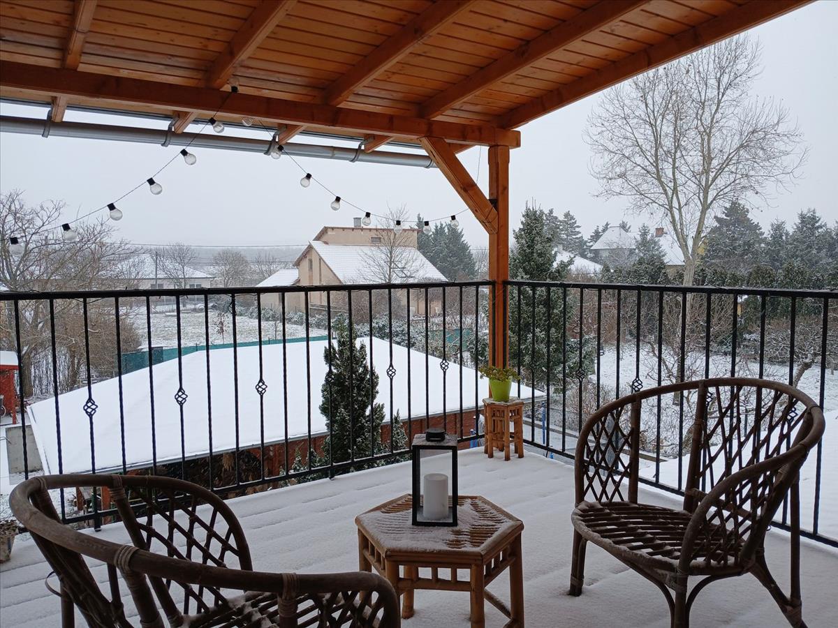 Az emeleten három külön bejáratú hálószoba, egy kézmosós wc, nappali, és egy 9 m²-es erkély található, amely tökéletes helyszíne lehet egy nyugodt esti pihenésnek, szép kilátással zöldövetere és Csömörre. a ház terei világosak, barátságos hangulatúak.