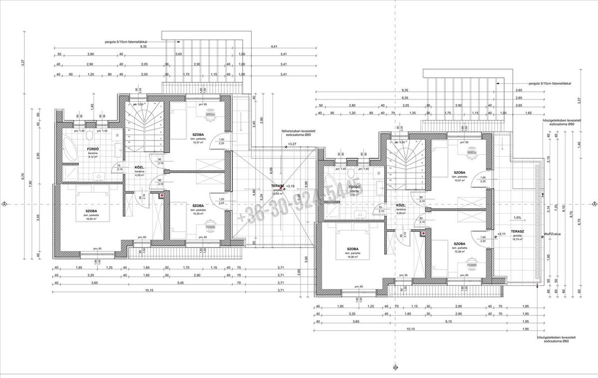 XVI. Cinkota családi házas részén, 1400 nm-es telekre épülő, nettó 125 nm-es, belső kétszintes, nappali + 4 szobás, dupla komfortos, mindkét szinten nagy teraszos (50 nm) ikerház eladó!