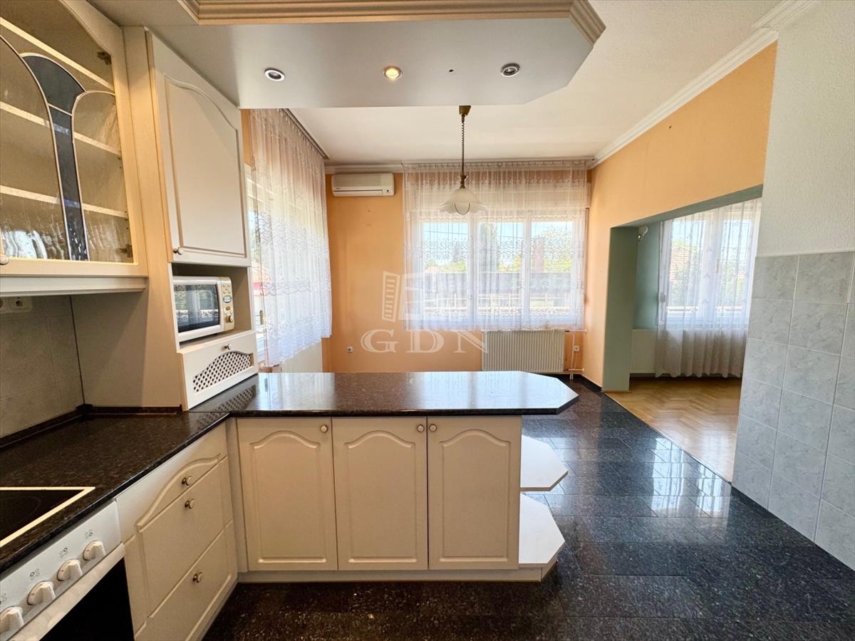 XVI. kerületben, Árpádföld szívében kitűnő ellátottság mellett, 504 nm -es összközműves telken 70-es években épült, 2 szintes, 164 nm -es lakóterületű, 5 szobás, valamint egy különálló részben felújításra szoruló, 43 nm -es összkomfortos 2 szobás melléképülettel bővített, így összesen 207 nm -es lakóterületű, 5+2 fél szobás, étkezőkonyhás, napos világos DK-i fekvésű, alacsony fenntartású, egyedi mérőórás, (2 db gázórával rendelkezik), dupla gázkazán fűtésű, jó állapotú tehermentes, akár azonnal birtokba vehető, ikerház fél, beépített gépesített konyhával, közvetlenül a fő épületből megközelíthető garázzsal, elektromos autó töltési lehetőséggel, gondozott kerttel rugalmas költözéssel eladó.