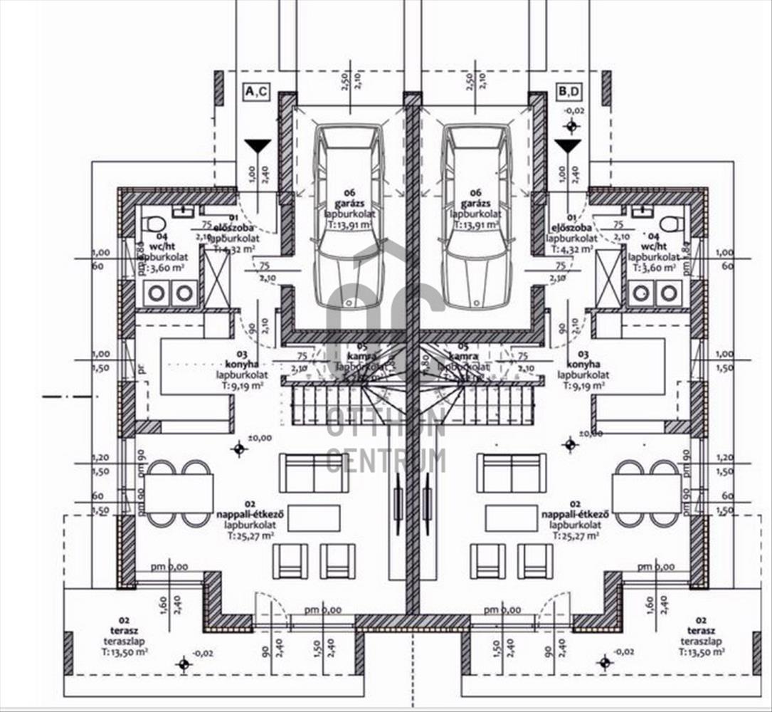 A nagyszerű tervezésnek köszönhetően, tágas terek, jó elosztás jellemzi a házat. Az ikerházak garázzsal és hangszigetelt fallal vannak elválasztva egymástól.