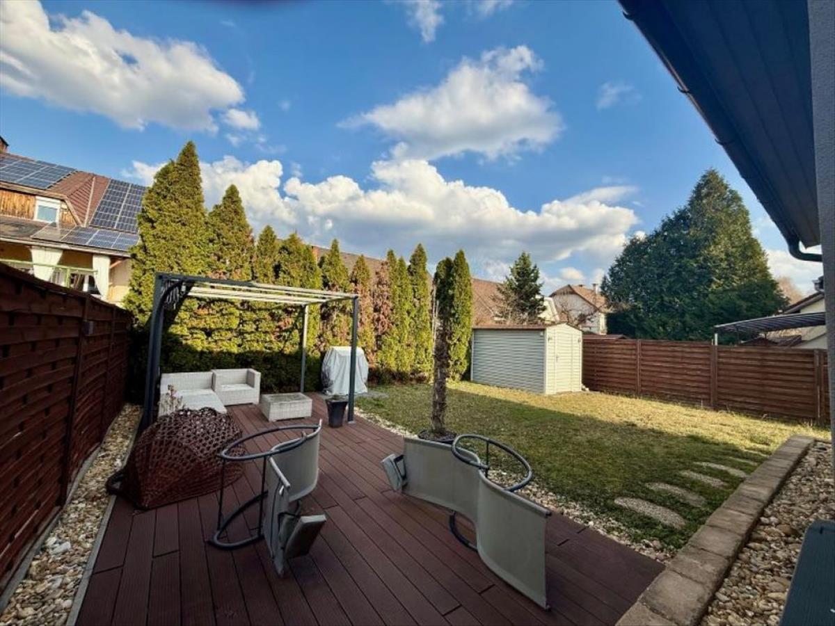 A 350 nm -es kertben helyet kapott egy wpc terasz is, mely alkalmas délutáni beszélgetésekre, sütögetésekhez is.