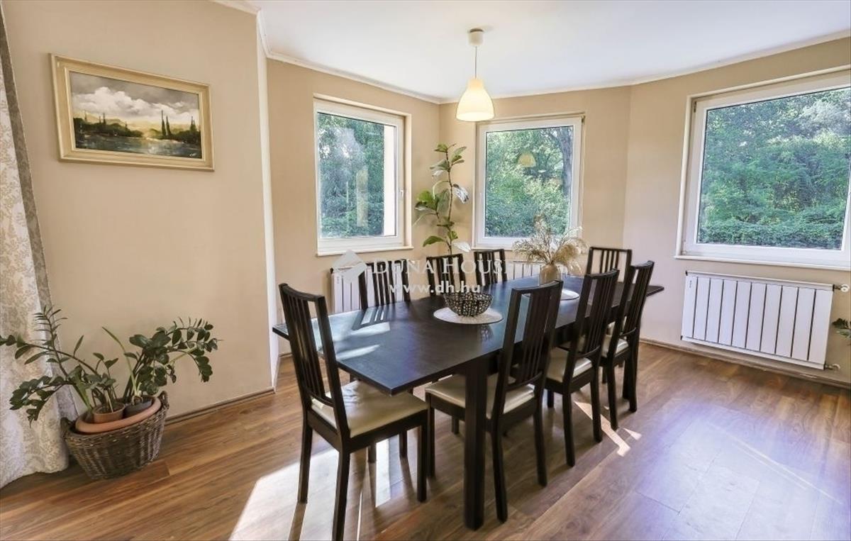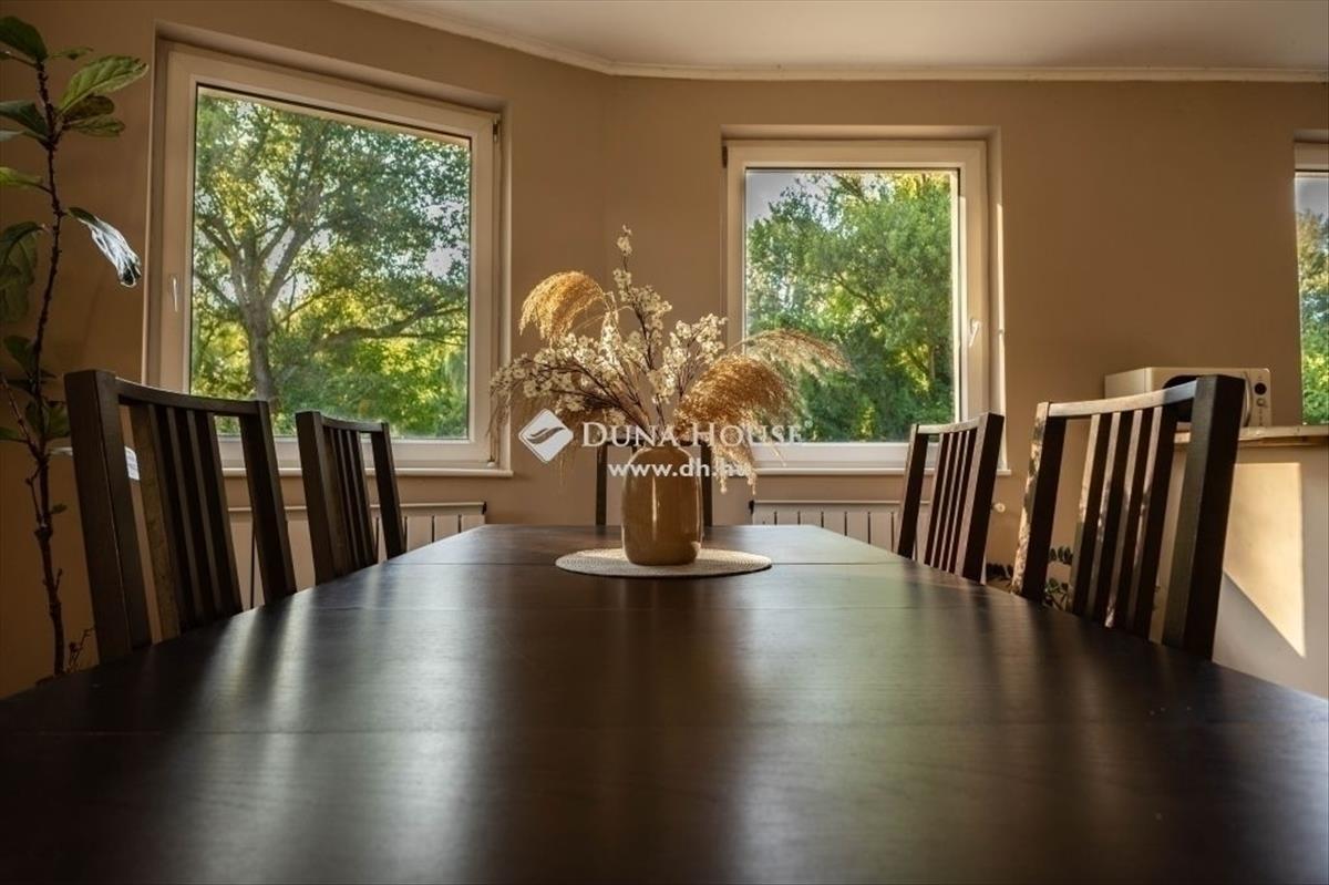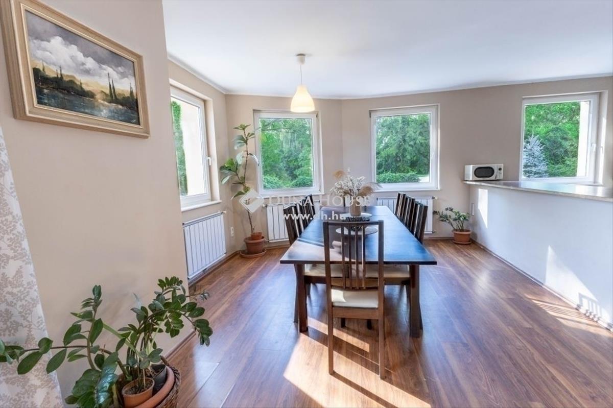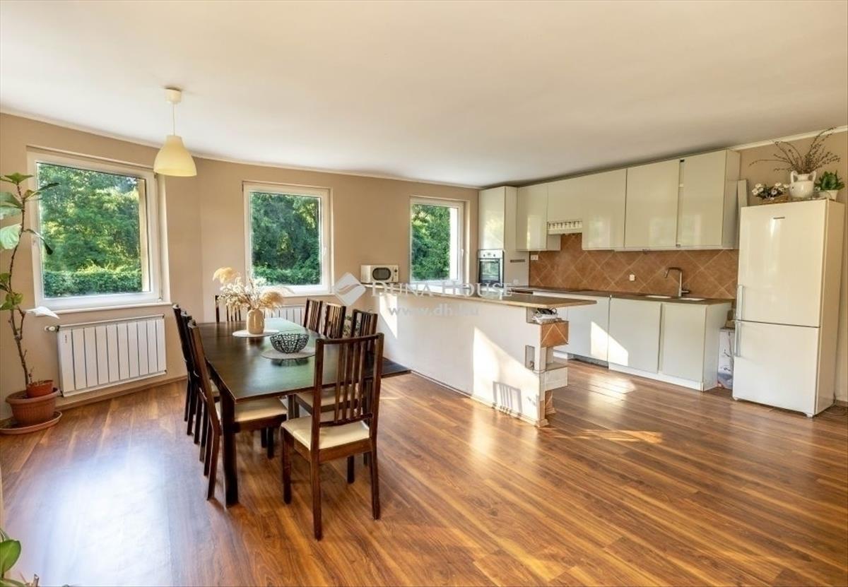 Eladó Budapest XVII. kerületében, Rákoscsaba kerületrészben, a Rákos-patak közvetlen szomszédságában, kellemes kertvárosi környezetben, …. Nm-es telken, egy 2003-ban épült és 2016-ban felújított, gyönyörű állapotban lévő, 178 nm -es, 6 szobás, belső kétszintes ikerház fél! Ősfás környezet, garázs! Az ikerház egy X nm -es nyeles telek hátsó részére épült 2003-ban, beton alapra, tégla falazattal, vasbeton födémmel és cseréptetővel. a homlokzat 15 cm-es dryvitos szigeteléssel ellátott, a födém kőzetgyapot borítást kapott. Az eladó ingatlan az ikerház hátsó lakása, melyet az utcáról, egy hosszabb autóbeállón keresztül közelíthetünk meg. a ház teljesen megfelel, a mai kor igényeinek. Kényelmes, élhető életterekkel rendelkezik egy nagyobb család számra is. Kezelhető mérető telek, ahol csak a néha ott legelésző őzek és szarvasok a szomszédok, mindez Budapest közigazgatási határán belül! Az ablakok hőszigetelő üvegezésű, korszerű, műanyag nyílászárók, melyek a ház minden oldalán megtalálhatóak. a szobák aljzata laminált parkettával borítottak, az egyéb helyiségek kerámia lappal burkoltak. Földszint:A mai kor igényeit tökéletesen kiszolgáló, amerikai konyha, étkező és egy közel 50 nm -es reprezentatív nappali található, óriási üvegfelületekkel, kilátással a kertre, közvetlenül az épületbe belépés után. a szinten található az előszoba, még egy dolgozó helyiség, kádas fürdő WC-vel és itt kapott helyet a gépészeti helyiség is. a garázsból közvetlen bejárási lehetőség van az előszobába, esős időben is garantált a száraz lábon való bejutás a házba. a 32 nm -es terasz a nappaliból érhető el. emelet:Az emeleten 4 szoba, gardrób, egy külön wc, illetve egy sarokkádas fürdő+WC helyiség található. a nappali fölött 25 nm -es, emeleti terasz került kialakításra. a szinteket vas szerkezetű, fa lépcsőlapokkal szerelt lépcső köti össze. a fűtés és a használati meleg víz-ellátás egy korszerű és folyamatosan karbantartott gázkazánnal megoldott. Amennyiben további helyiségekre van szükség a padlástér teljes mértékben beépíthető. a telek teljesen körbekerített és intimitását egy, az utcától induló hosszú autóbeálló biztosítja, amelynek a házhoz tartozó része, a garázson kívül további 3 autó számára biztosít beállást, illetve kialakítható medence, szaletli vagy akár egy nyári konyha is. Az épület a telek hátsó részén helyezkedik el, így a saját telekrészünk, hátsó fele, egy nádassal és óriási fákkal körül határolt rész, a Rákos-patakról pár méterre, egyedi lehetőséget nyújt a pihenésre, valós vízparti hangulattal. Az utcán a parkolás ingyenes és minden esetben találunk szabad parkolóhelyet. Az infrastruktúrát tekintve, 5 perc a közelben található a 169e busz megállója és a vasútállomás is, mellyel 20-25 perc alatt a Keletibe érhetünk, illetve autóval 10 perc az M0-ás körgyűrű is. Szintén gyalogosan elérhető közelségben van a Spar, patika, orvosi rendelő, iskola és egyéb a mindennapi élethez szükséges intézmények. Ez mai kor minden igényének megfelelő ház különleges lehetőséget kínál mindazoknak, akik hazaérve kiszakadnának a városi körforgásból, Budapest kertvárosi részében. a ház nagy terei, telkének különleges természeti adottságai és a hatalmas ősfák adta miliő ideális választás lehet mindazoknak, akik az átlagostól eltérőre vágynak. Tekintse meg és tegyen rá ajánlatot!