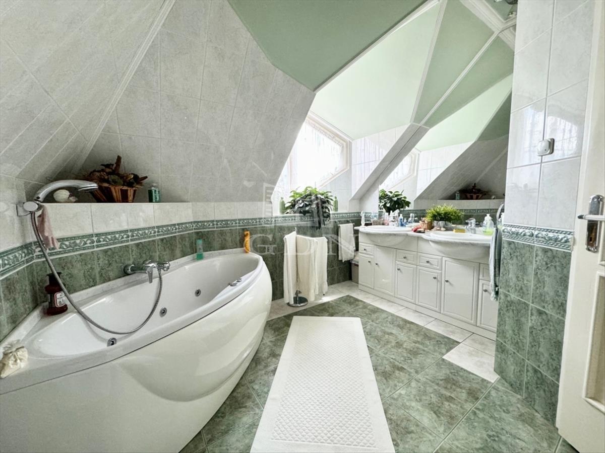 XVII. kerület közkedvelt városrészében, Madárdombon, kertvárosi környezetben, csendes aszfaltozott mellékutcában, 360 nm-es összközműves telken, 1989-ben épült, kiváló adottságokkal rendelkező, nettó 195 nm-es lakóterületű, 3 szintes, 5 szobás, (külön nyíló) dupla komfortos, ablakos konyhás, étkezős, tágas terekkel rendelkező, napos-világos, K-NY-i fekvésű, alacsony fenntartású, gázkazán fűtésű, a nappaliból közvetlen teraszkapcsolatos, jó állapotú, műanyag thermo ablakokkal szerelt, klimatizált, riasztórendszerrel felszerelt ikerház fél, beépített, gépesített konyhával, közvetlenül a házból megközelíthető fűtött garázzsal, mosókonyhával, hobby helyiséggel, finn szaunával, gondozott, öntözőrendszerrel kiépített kerttel eladó!