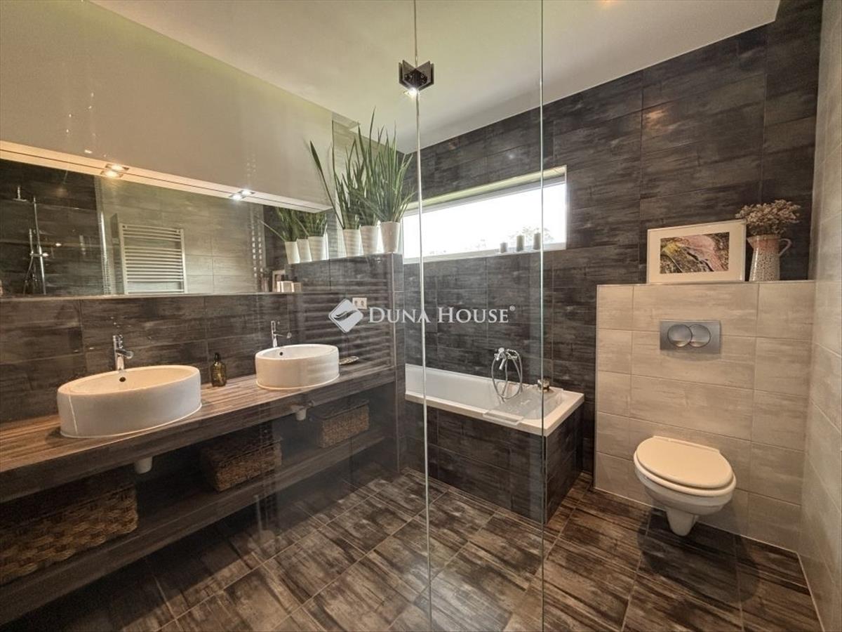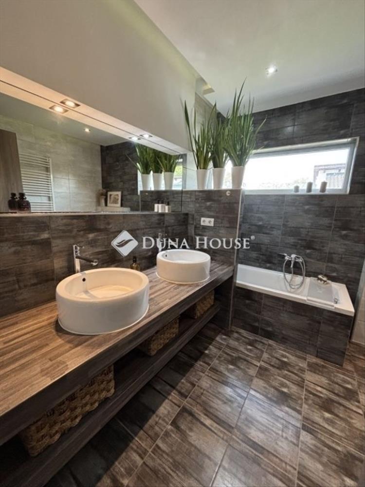 Az ingatlan 2015-ben készült, magas műszaki tartalommal és minőségi kivitelezéssel, amelynek a lakóterülete két szinten 94 nm , amelyhez tartozik egy 15 nm -es garázs és az udvaron, a viacoloros burkolattal ellátott részen két autó részére udvari beálló, illetve a ház udvari frontján található egy 27 nm -es terasz, amelyet a tulajdonosok egy zárható és fűthető télikertté varázsoltak. a ház alsó szintjén került kialakításra az előszobából belépve a kézmosós toalett és teljesen modern, egy légterű 35 nm -es nappali+amerikai konyha. a felső szinten három hálószoba, gardrób szoba és egy fürdőszoba található.