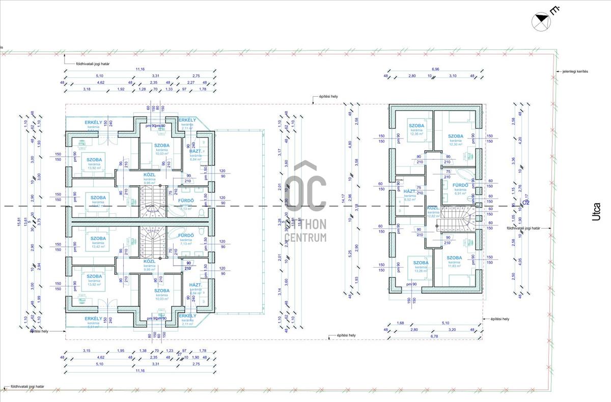 Telek területe: 1300 m2 (min. 400 m2 privát rész lakásonként)