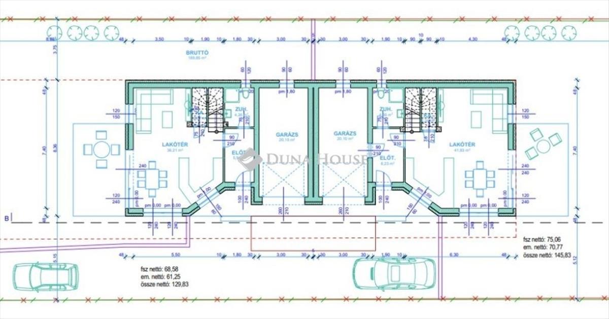 Belsőmajor területén kétlakásos modern ikerház eladó, a lakásoknak nincs közös fala, mert a gépkocsitárolóknál kapcsolódnak!