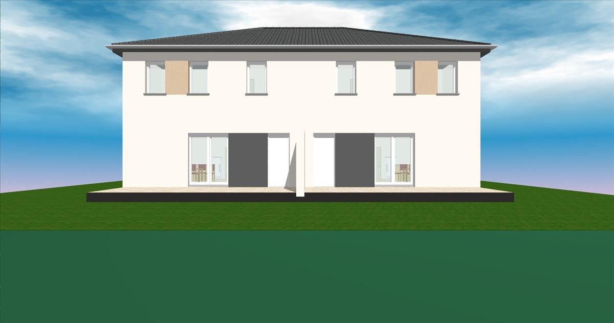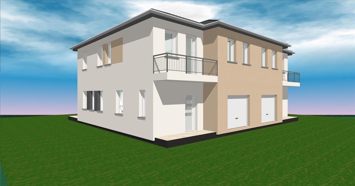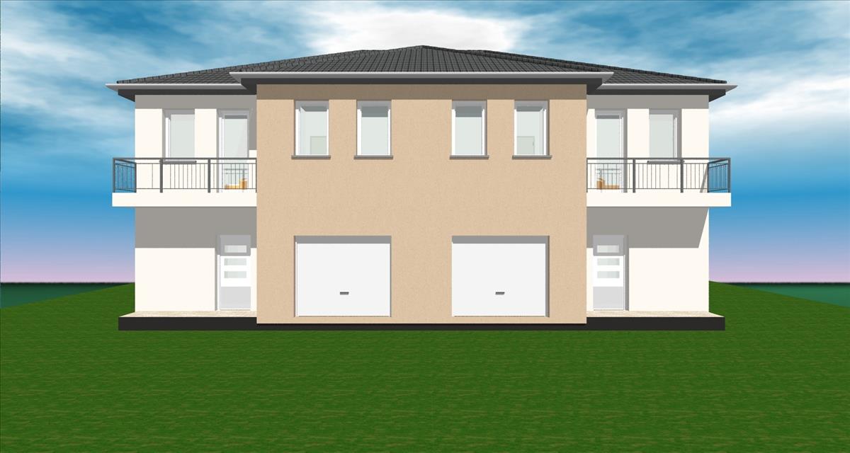 Ez a modern ikerház egy 750 m²-es telken épült.