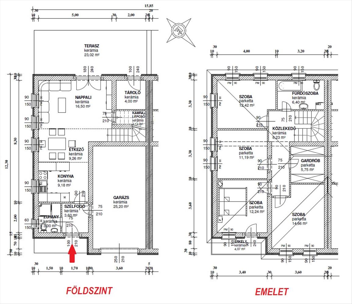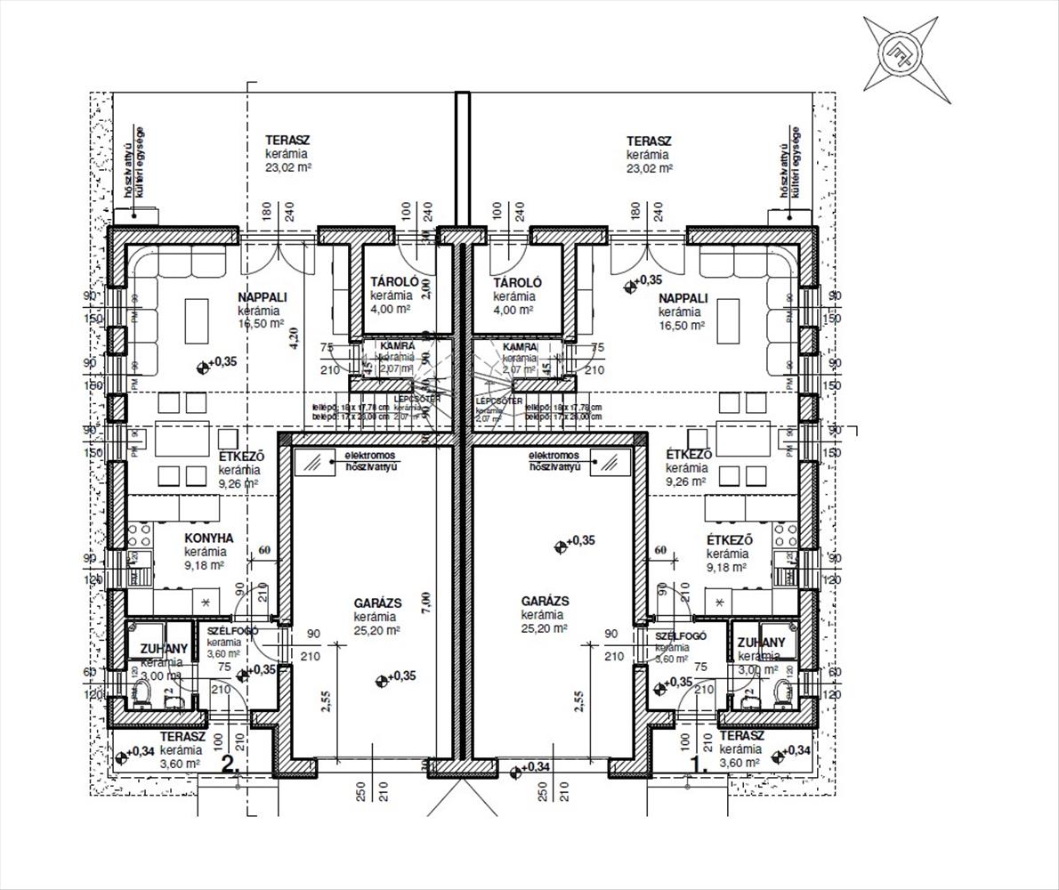 Mindkét ikerfél nettó 120 m²-es, melyekhez 25 m²-es garázs is tartozik.