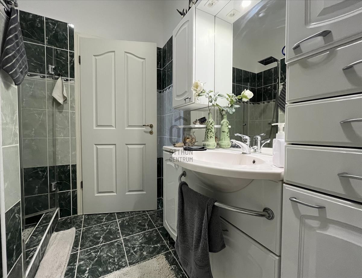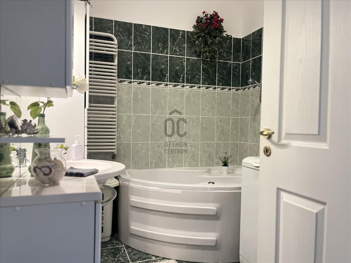 A fürdőben törölközőszárítós radiátor és padlófűtés biztosítja a meleget.
