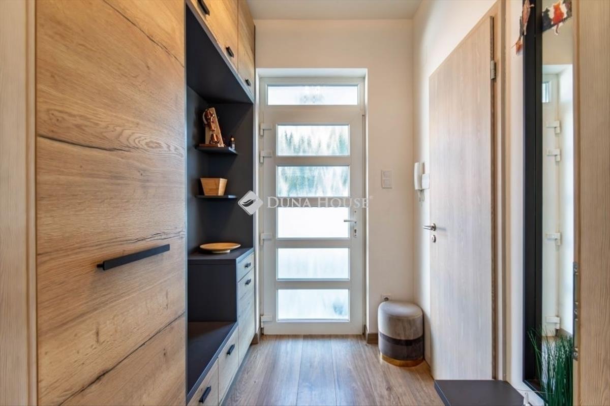 A ház nettó 110 négyzetméter Nappali+3 hálószoba + 24 négyzetméteres két állásos garázs. 2020 Ban épült egy 404 négyzetméteres telekre, első tulajdonosai álmodták meg a belső designt.