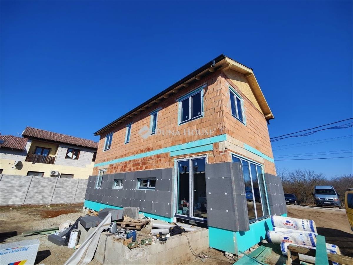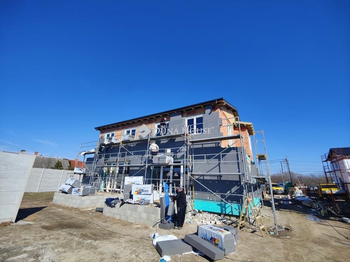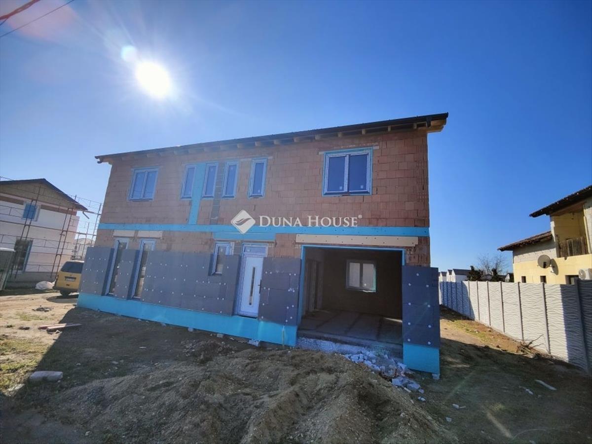 Eladó új építésű kétszintes ikerház a XVIII. kerület almáskert részén új építésű házak szomszédságában 1300 nm -es telken. Az épületek szigorú környezetvédelmi és energetikai elvárásoknak megfelelnek! ! a lakás fűtése és meleg víz ellátása 12 Kw-os Levegő-víz Hőszivattyúval készül, amely 230 L-es meleg víztartályt is tartalmaz. a lakások komfortjáról 2 db 3. 5 Kw-os inverteres hűtő-fűtő klíma fog gondoskodni. Elhelyezkedését tekintve az utcafront felől az önálló családi ház, a telek hátsó részén az emeletes ikerház kerül kivitelezésre. Az egész telek 1300 nm . Az önálló családi ház és az ikerházi lakások is saját leválasztott telekrésszel rendelkeznek, képek alatt a helyszínrajzon is jól látható. Az önálló épülethez tartozó telekterület kb 400 nm , az ikerházakhoz tartozó telekterület kb 450 nm . Műszaki:30-as főfal +10 cm-es tégla válaszfalak+ 15 cm homlokzati szigetelésVasbeton sávalapantracit/fehér, műanyag tokos, 3 rétegű 6 légkamrás thermo üveges külső nyílászárókhőszivattyú, padló fűtésselantracit színű cserépTulajdonságok:amerikai konyhás nappali3- 4 db hálószoba1 db fürdő /2 db wcPrivát kerítéssel elválasztott saját telekrészkertkapcsolatos nappalielektromos kapu előkészítés és hőszigetelt garázs ajtó+ motor az árbanriasztó rendszer előkészítésParkolás:Egy állásos garázs (benne van a vételárban)Finanszírozás:Irodánkon keresztül (a piacon, a lehető legjobb) bank semleges ajánlatokkal segítjük a hitelfelvétel során. 3%-Os hitel, CSOK igényelhető, a környék infrastruktúrája kiváló, tömegközlekedés pár perc sétára megtalálható. AZ árak kulcsrakész állapotra VONATKOZNAK! Kiváló, megbízható kivitelező, referencia házakkal! Az építkezés várható befejezése 2026. November