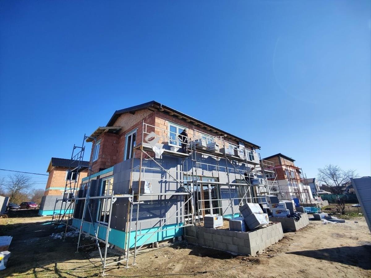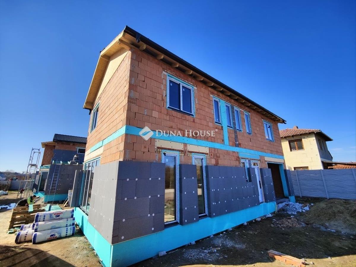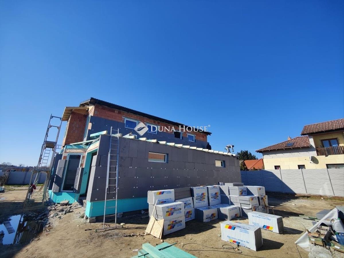 Eladó új építésű kétszintes ikerház a XVIII. kerület almáskert részén új építésű házak szomszédságában 1300 nm -es telken. Az épületek szigorú környezetvédelmi és energetikai elvárásoknak megfelelnek! ! a lakás fűtése és meleg víz ellátása 12 Kw-os Levegő-víz Hőszivattyúval készül, amely 230 L-es meleg víztartályt is tartalmaz. a lakások komfortjáról 2 db 3. 5 Kw-os inverteres hűtő-fűtő klíma fog gondoskodni. Elhelyezkedését tekintve az utcafront felől az önálló családi ház, a telek hátsó részén az emeletes ikerház kerül kivitelezésre. Az egész telek 1300 nm . Az önálló családi ház és az ikerházi lakások is saját leválasztott telekrésszel rendelkeznek, képek alatt a helyszínrajzon is jól látható. Az önálló épülethez tartozó telekterület kb 400 nm , az ikerházakhoz tartozó telekterület kb 450 nm . Műszaki:30-as főfal +10 cm-es tégla válaszfalak+ 15 cm homlokzati szigetelésVasbeton sávalapantracit/fehér, műanyag tokos, 3 rétegű 6 légkamrás thermo üveges külső nyílászárókhőszivattyú, padló fűtésselantracit színű cserépTulajdonságok:amerikai konyhás nappali3- 4 db hálószoba1 db fürdő /2 db wcPrivát kerítéssel elválasztott saját telekrészkertkapcsolatos nappalielektromos kapu előkészítés és hőszigetelt garázs ajtó+ motor az árbanriasztó rendszer előkészítésParkolás:Egy állásos garázs (benne van a vételárban)Finanszírozás:Irodánkon keresztül (a piacon, a lehető legjobb) bank semleges ajánlatokkal segítjük a hitelfelvétel során. 3%-Os hitel, CSOK igényelhető, a környék infrastruktúrája kiváló, tömegközlekedés pár perc sétára megtalálható. AZ árak kulcsrakész állapotra VONATKOZNAK! Kiváló, megbízható kivitelező, referencia házakkal! Az építkezés várható befejezése 2026. November