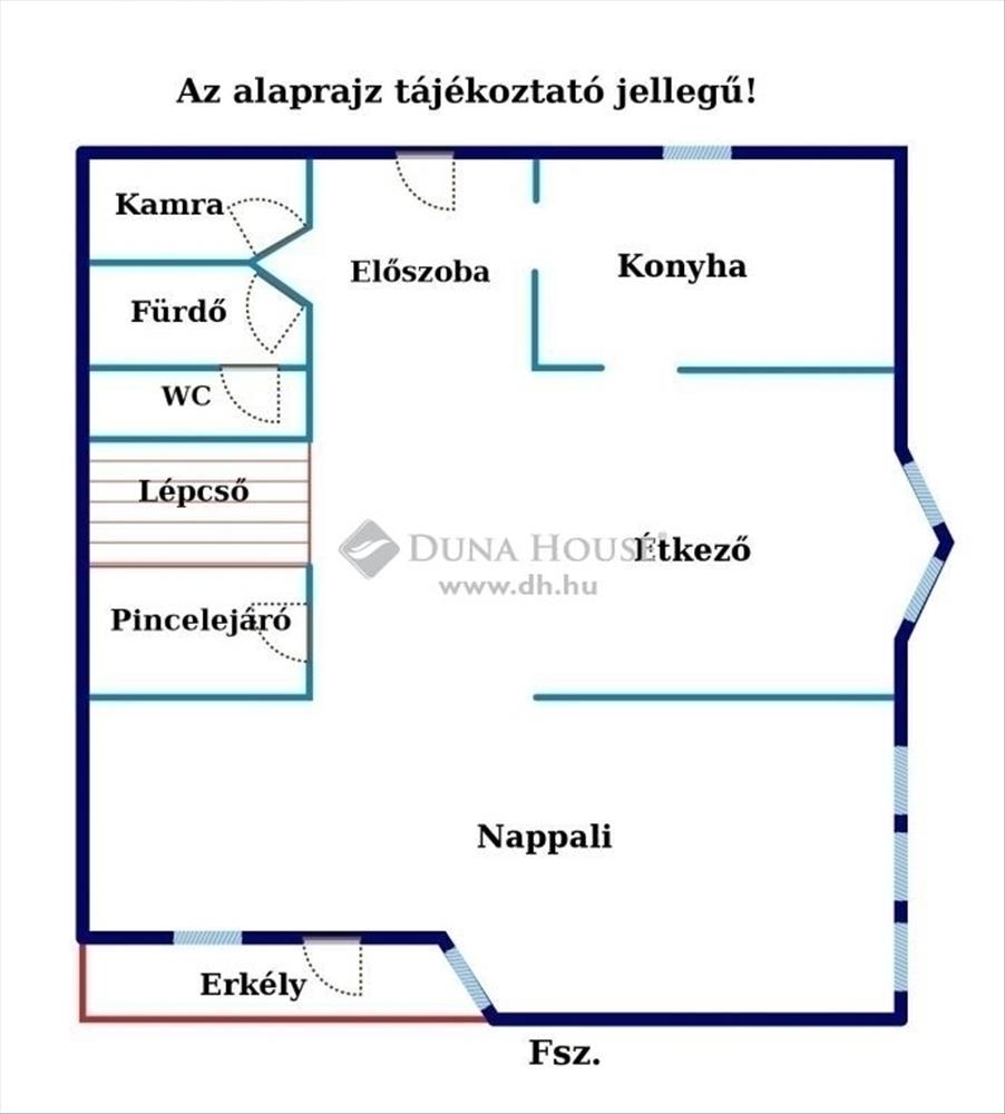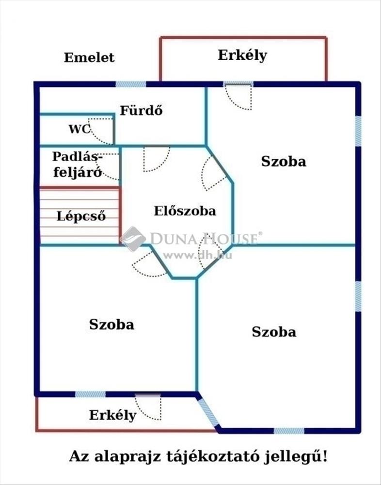 A bejárati ajtóból egyenesen haladva balra a tágas étkező, jobbra az emeletre vezető széles lépcső+ a pincelejárat található. Az étkezőből egyenes tovább haladva a tágas, világos nappaliban találjuk magunkat, ahonnan az erkélyre juthatunk ki. Az emeleten fürdő+WC, padlásfeljáró és 3 tágas szoba található, az egyik szobához erkély is tartozik.
