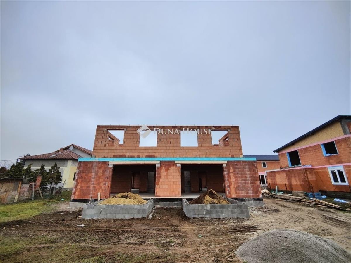 Eladó új építésű kétszintes ikerház a XVIII. kerület almáskert részén új építésű házak szomszédságában 1300 nm-es telken. Az épületek szigorú környezetvédelmi és energetikai elvárásoknak megfelelnek! ! a lakás fűtése és meleg víz ellátása 12 Kw-os Levegő-víz Hőszivattyúval készül, amely 230 L-es meleg víztartályt is tartalmaz. a lakások komfortjáról 2 db 3. 5 Kw-os inverteres hűtő-fűtő klíma fog gondoskodni. Elhelyezkedését tekintve az utcafront felől az önálló családi ház, a telek hátsó részén az emeletes ikerház kerül kivitelezésre. Az egész telek 1300 nm. Az önálló családi ház és az ikerházi lakások is saját leválasztott telekrésszel rendelkeznek, képek alatt a helyszínrajzon is jól látható. Az önálló épülethez tartozó telekterület kb 400 nm, az ikerházakhoz tartozó telekterület kb 450 nm. Műszaki:30-as főfal +10 cm-es tégla válaszfalak+ 15 cm homlokzati szigetelésVasbeton sávalapantracit/fehér, műanyag tokos, 3 rétegű 6 légkamrás thermo üveges külső nyílászárókhőszivattyú, padló fűtésselantracit színű cserépTulajdonságok:amerikai konyhás nappali3- 4 db hálószoba1 db fürdő /2 db wcPrivát kerítéssel elválasztott saját telekrészkertkapcsolatos nappalielektromos kapu előkészítés és hőszigetelt garázs ajtó+ motor az árbanriasztó rendszer előkészítésParkolás:Egy állásos garázs (benne van a vételárban)Finanszírozás:Irodánkon keresztül (a piacon, a lehető legjobb) bank semleges ajánlatokkal segítjük a hitelfelvétel során. 3%-Os hitel, CSOK igényelhető, a környék infrastruktúrája kiváló, tömegközlekedés pár perc sétára megtalálható. AZ árak kulcsrakész állapotra VONATKOZNAK! Kiváló, megbízható kivitelező, referencia házakkal! Az építkezés várható befejezése 2026. November