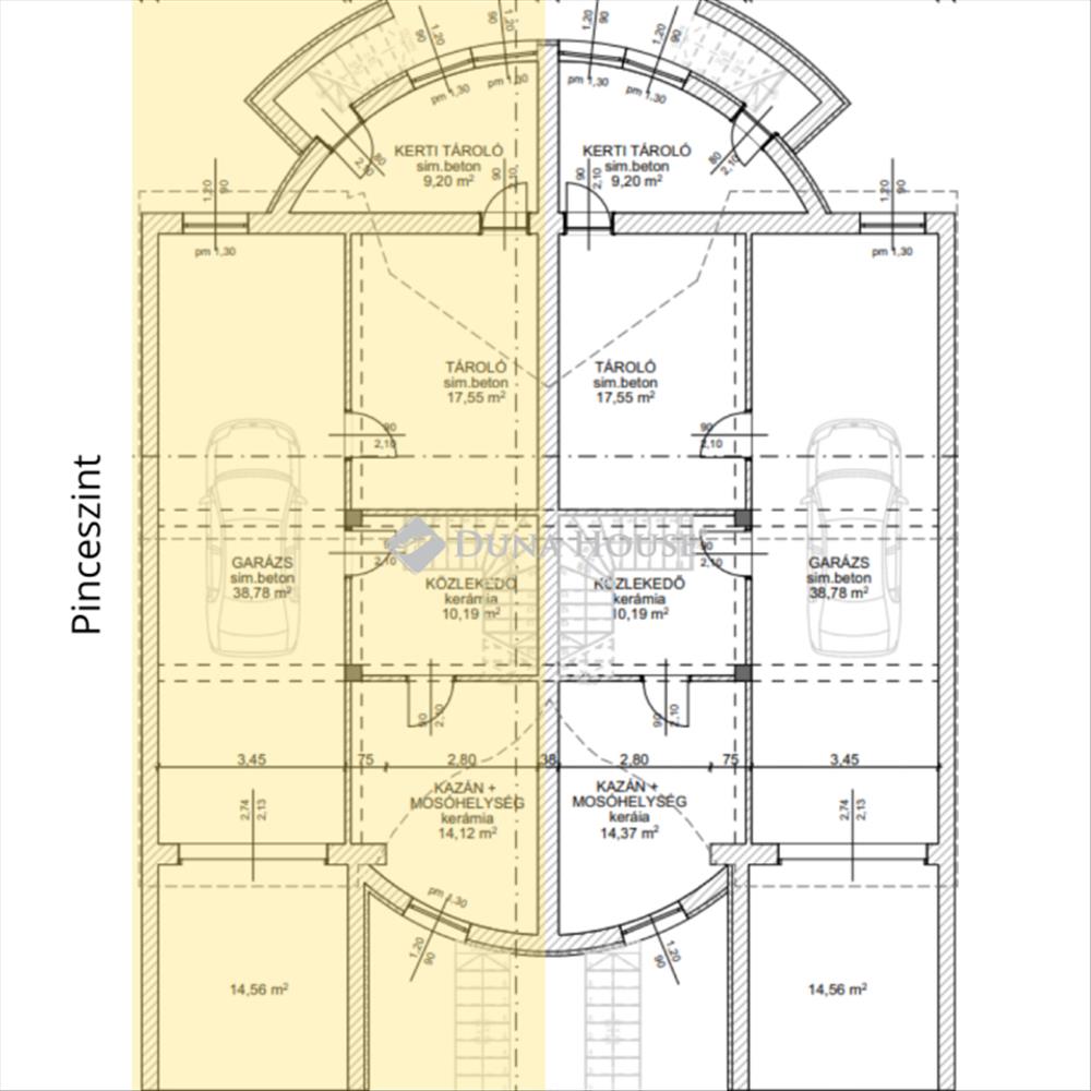 Pinceszint (garázs + tárolók + gépészet)