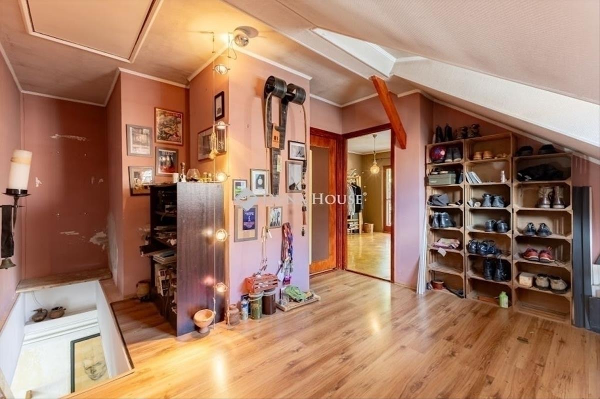 Az alsó szintről masszív, fa szerkezetű lépcsőn érhetjük el a tetőteret, ahol egy előtér, valamint 2 szoba, fürdő WC-vel, került kialakításra. Az emeleti fürdőszoba felújítása elkezdődött, de nem került befejezésre.