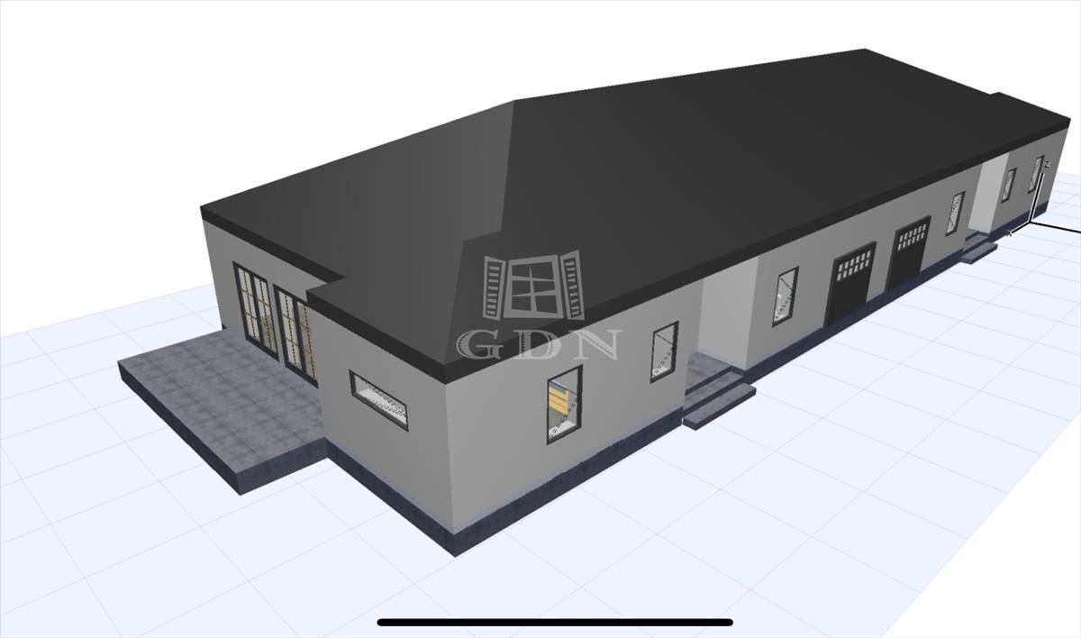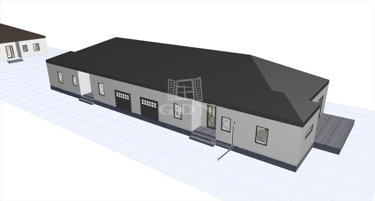 A széles telket a bal oldalán leválasztott szolgalmi út szolgálja ki (4, 5 m × 70 m), így az ingatlan közvetlenül az utcáról és a szolgalmi útról is megközelíthető. a telek belső részén helyezkedik el a középső ikerfél, a legvégén pedig egy különálló, önálló családi ház kap helyet – az elrendezés rendezett, átlátható, a forgalom szervezett.