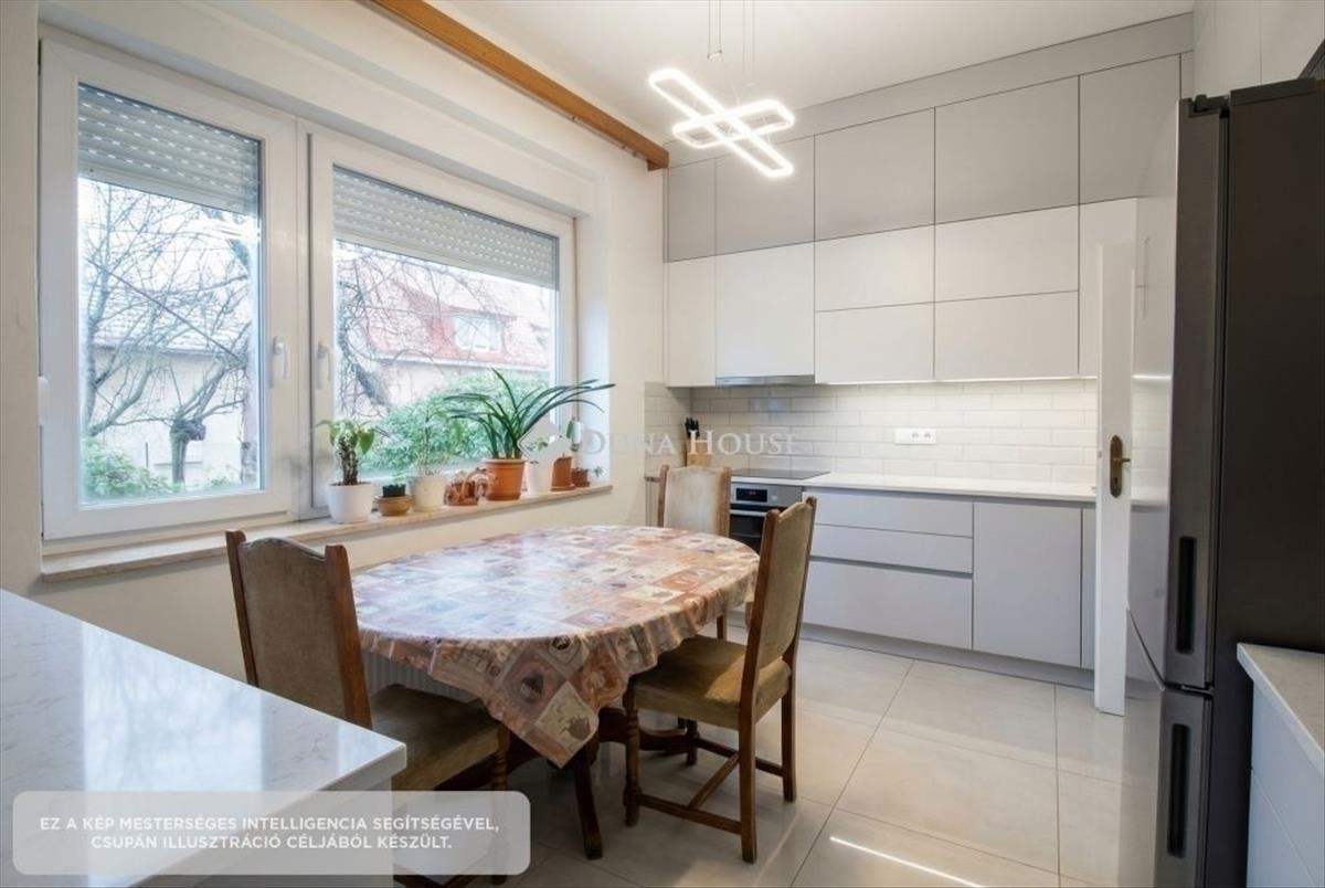 Eladó a XVIII. Szemeretelepen egy 110 nm -es, három szintes, nappali+két hálószobás, rendezett, jól karbantartott, cirkós fűtéses, szerkezetileg kifogástalan állapotban lévő ikerház, egy 320 nm -es összközműves telekkel. Telek:Teljesen összközműves, jogilag rendezett, teljesen leválasztott, külön mérőórás. a telken, fedetlen kocsibeálló található két autó számára, valamint egy 32 nm -es konyhás, fürdőszobás kis garzon lakás, teljesen lakható állapotra kialakítva. Épület:Az ikerház kiválóan alá lett pincézve, mely csont száraz állapotban van, így gyakorlatilag bármilyen tárolásra alkalmas. Régen egy kisebb fitnessz terem volt, ma már tároló funkciót lát el. Az alsó szinten található a nappali és a tágas ablakos konyha, valamit egy külön fürdőszoba, a felsőszinten pedig a két hálószoba és szinten egy külön fürdőszoba kapott helyet. Finanszírozás:Az ingatlan tehermentes, jogilag rendezett, így akár a 3%-os banki támogatással is megvásárolható. Műszaki:A ház 1974-ben épült, de folyamatosan épült, szépült. a tető a 2000-es évek elején újították fel teljesen, a nyílászárókat is, valamint a külső szigetelést is. 2025-Ben kapott egy esztétikai felújítást, ahol a teljes szanitereket kicserélték, valamit festést is kapott. a fűtést és a melegvízet egy cirkó kazán biztosítja, mely minden évben karban van tartva. a melegvízet pedig egy 80l-es bojler szolgáltatja. Környék, közlekedés:Az ingatlan csendes, kertvárosias környezetben helyezkedik el, rendezett utcákkal és sok zöldfelülettel. a mindennapi bevásárlás kényelmesen megoldható, a közelben kisebb üzletek, pékség, gyógyszertár, valamint nagyobb áruházak és bevásárlóközpontok is elérhetők. Tömegközlekedéssel több buszjárat biztosít gyors kapcsolatot a köki Terminál, a metró és a belváros irányába. Autóval néhány perc alatt elérhetők a főbb közlekedési útvonalak, így a város bármely pontja könnyen megközelíthető. a környék nyugodt, biztonságos, kifejezetten kedvelt családok és fiatal párok körében a jó infrastruktúra és az élhető környezet miatt. FIX 3% lakáshitelre megvehető