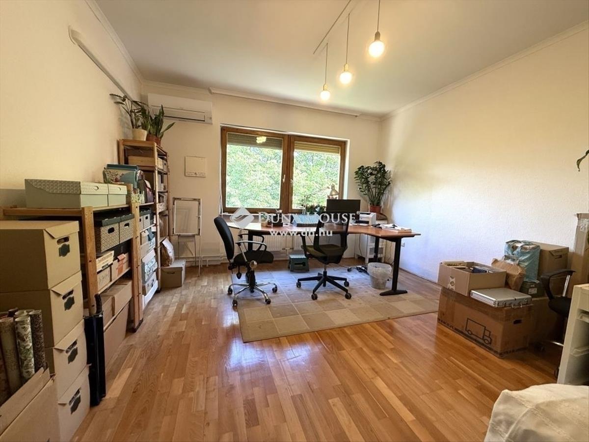 Az emeleti lakrész kandallós nappali plusz 2 normál méretű szobával és gardrób helyiséggel, konyhával, fürdőszobával és egy körbeüvegezett étkező-előtérrel került kialakításra. Ezen a szinten 2 beltéri klíma is beépítésre került. Az alsó szinten, amely a Hollandi út felől földszinti lakrész önálló bejárattal, 2 nagyméretű szoba, egy háztartási és/vagy fürdőszoba, zuhanyzós mellékhelyiség, kazánház, előszoba és közlekedő résszel, beépített bútorral került kialakításra. a fűtését gáz kazán biztosítja, a tetőre szerelt napkollektorral a meleg víz ellátását segíti, melyhez nagyméretű víztartály kapcsolódik.