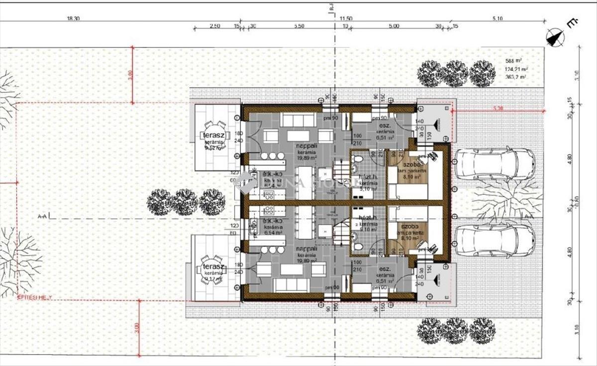 Az ingatlanhoz kb. 300 M² saját kert tartozik, amely ideális játszóterület gyerekeknek vagy kutyások számára. Egy saját gépkocsibeálló is kialakításra kerül.