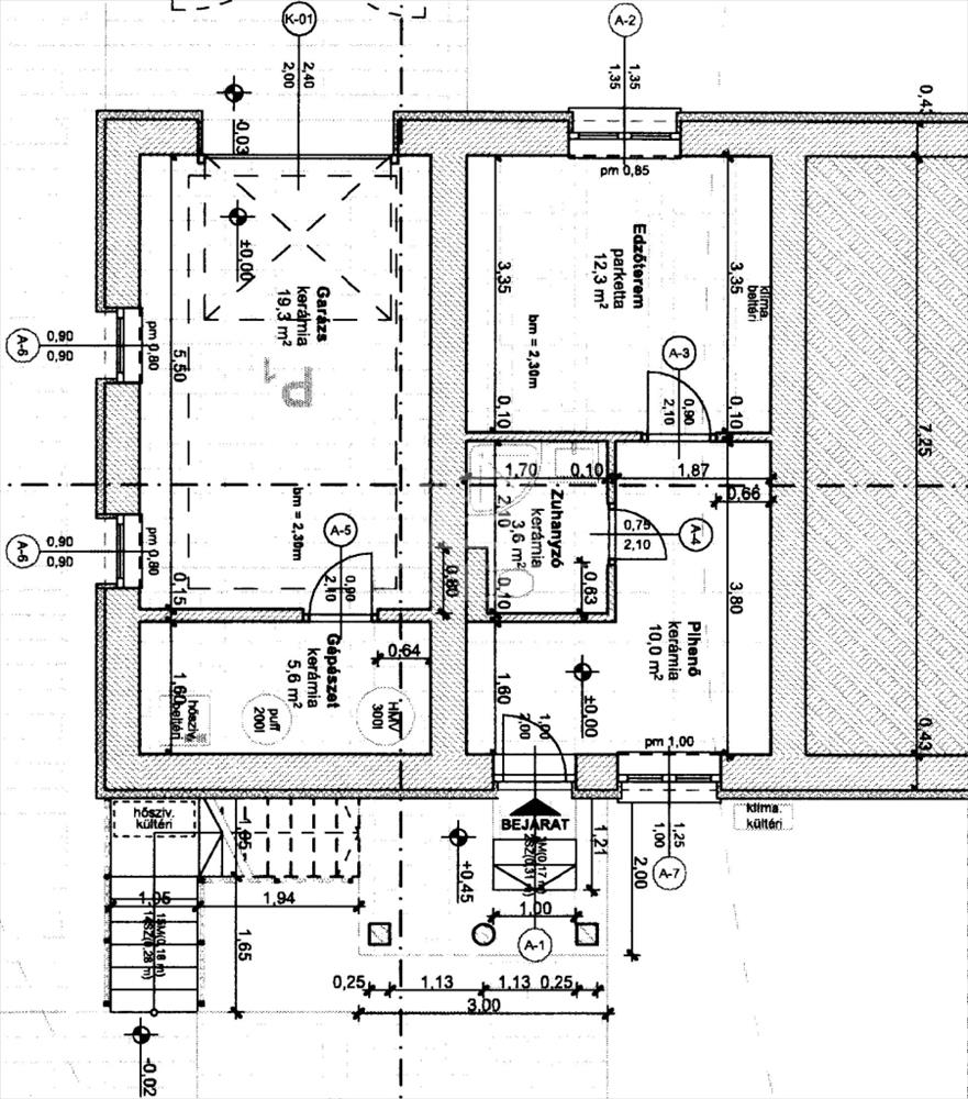 -A földszinten található a 19 m2-es garázs, gépészeti helyiség, és egy külön bejáratú garzon lakás (előszoba, konyha, fürdőszoba, és szoba).