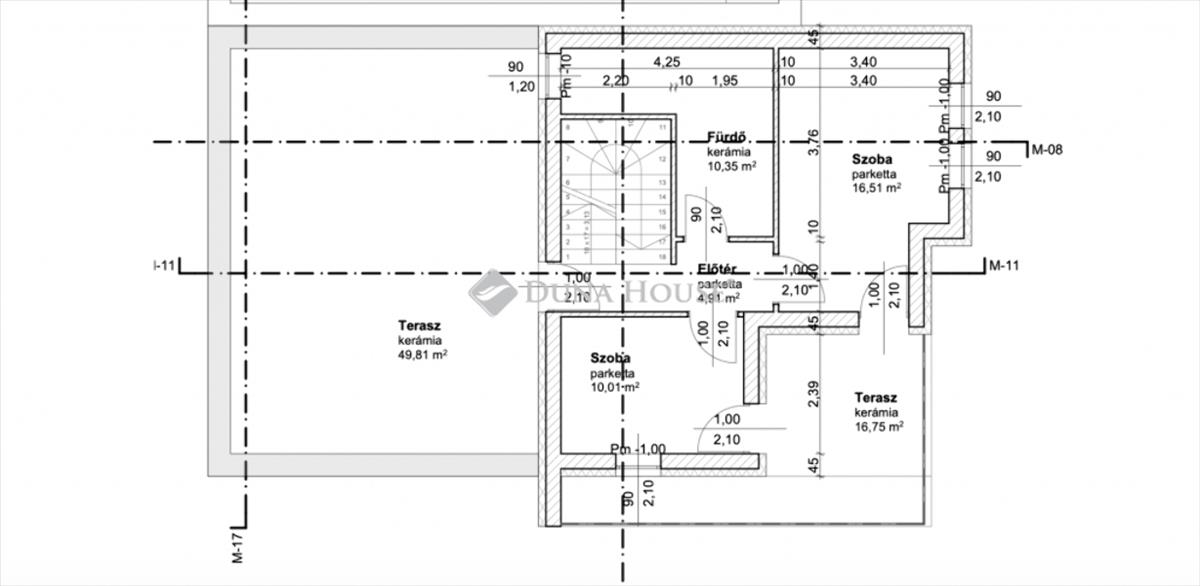 GARÁZS: 18, 54 m2, 3 db TERASZ,