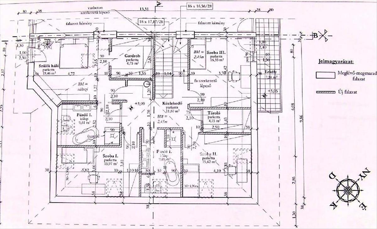 A 4 szint elosztása praktikus: az alagsorban 2 férőhelyes, 35 m2 garázs található, mosókonyha, kazánház, wellness helyiség, tárolók. a földszinten egy hatalmas konyha-étkező, tágas nappali, dolgozó/vendégszoba, az emeleten 4 háló, 2 fürdőszobával, 2 gardróbbal, valamint a tetőtérben egy szoba. Jelenleg a fűtést cirko kazán szolgáltatja radiátor és padlófűtés hőleadással, de rendelkezésre áll egy új vegyes tüzelésű kazán is, amely bármikor üzembe helyezhető. Minden emeleti szoba klímával felszerelt.