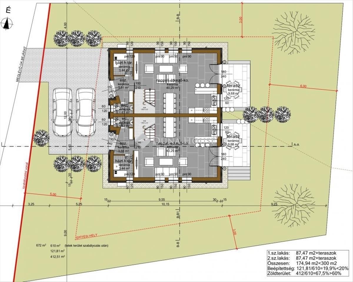 **Újépítésű ikerházfél a 22. kerületben** Fedezze fel Budapest 22. kerületében ezt a különleges ajánlatot: egy újépítésű ikerházfelet, amely egyaránt ideális választás családoknak és befektetőknek. Az ingatlan a közkedvelt Bartók Béla utcában található, amely tökéletesen ötvözi a kertvárosi nyugalmat és a város közelségét. Tulajdonságok a nettó 87, 5 négyzetméteres lakótér kiváló tervezésű, két szinten elhelyezkedő otthon, amely négy szobával és egy tágas nappalival rendelkezik. a két terasz még több lehetőséget kínál a pihenésre vagy családi összejövetelekre. Emellett egy saját, 300 négyzetméteres kert és egy kocsibeálló is a rendelkezésére áll. Az energiatakarékos hőszivattyús rendszer garantálja az alacsony fűtési és hűtési költségeket, így hosszú távon fenntartható és gazdaságos megoldást kínál. Rugalmasság a kivitelezésbenJelen állapotában még lehetősége van a belső terek testreszabására, kiválaszthatja a burkolatokat és szanitereket, így teljesen az Ön igényeire szabhatja új otthonát. Az építkezést egy megbízható, számos referenciával rendelkező helyi építő cég végzi, biztosítva a minőségi kivitelezést. Kiváló infrastruktúra és elhelyezkedésElhelyezkedése ideális, hiszen könnyen elérhető a városközpont autóval és tömegközlekedéssel egyaránt. a közelben számos szolgáltatás áll rendelkezésre: iskola, óvoda, gyógyszertár, posta és boltok mind karnyújtásnyira találhatók. a tömegközlekedés kiváló: a 187-es és 941-es buszok megállói rövid sétatávolságra vannak, míg a Budafok vasútállomás gyors kapcsolatot biztosít a Déli pályaudvar felé. Az M0-s autópálya közelsége pedig megkönnyíti a közlekedést az agglomeráció és az ország többi része felé. Kérdése van? Forduljon hozzánk bizalommal! FIX 3% lakáshitelre megvehető