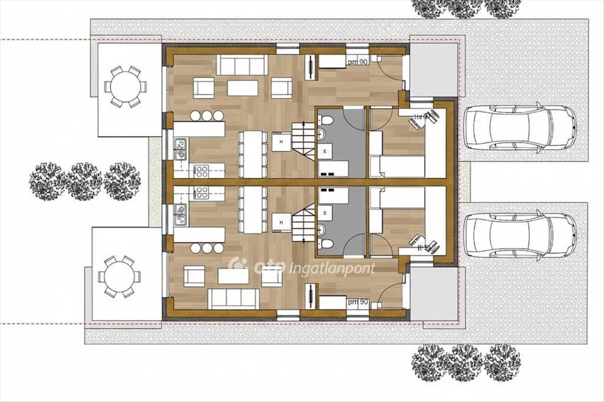 Telekterület: 294 m2-es saját, lekerített kert lakásonként