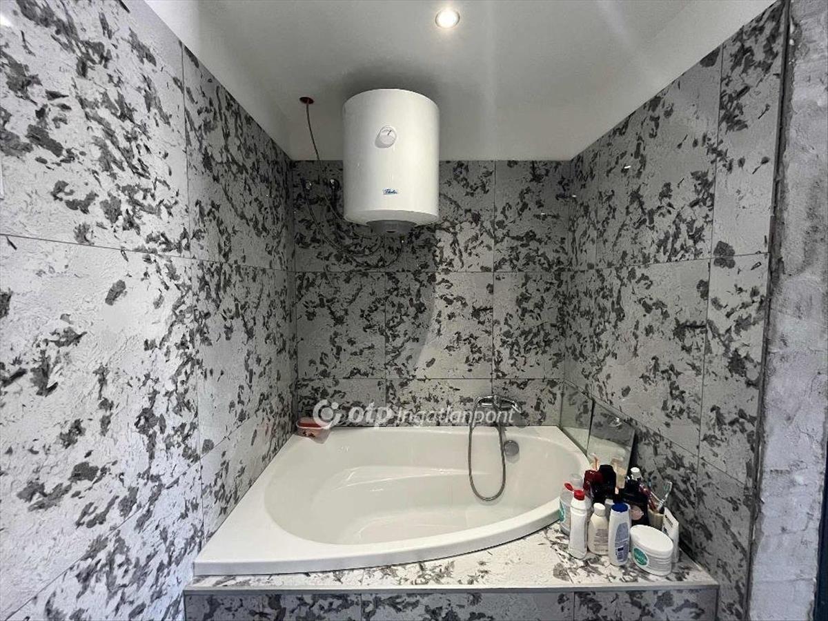 -új sarokkádas fürdőszobát alakítottak ki (újak a szaniterek, csapok, csempék és járólapok, a melegvizet elektromos bojler biztosítja)