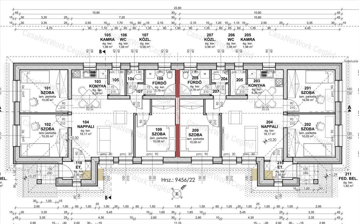 Az ingatlan viablokk falazattal épül, fa gerendás (fenyő) födémmel, a padlástér tárolásra alkalmas. a tetőszerkezet hagyományos ácskötésekkel és csavaros rögzítésekkel készül, fogópárokkal. a belmagasság 2, 7 méter. a fűtést kondenzációs gázkazán biztosítja padlófűtéssel az egész házban, a nappaliban egy darab hűtő-fűtő klíma kerül elhelyezésre. a hálószobák laminált padlóval, a többi helyiség járólappal burkolt. Hő- és hangszigetelt műanyag nyílászárók, valamint mdf dekorfóliázott beltéri ajtók kerülnek beépítésre. Parkolás a saját udvarrészen megoldott, két autó számára, a beálló és a járda viacolor térkő burkolattal készül. a két lakás teljesen külön bejárattal, külön udvarrésszel és beállóval rendelkezik. a tervek alapján az ingatlan csok+ hitelre alkalmas lesz. Az alaprajzok megtekintése és további információk kizárólag előre egyeztetett időpontban a CasaNetwork ceglédi irodájában lehetséges.