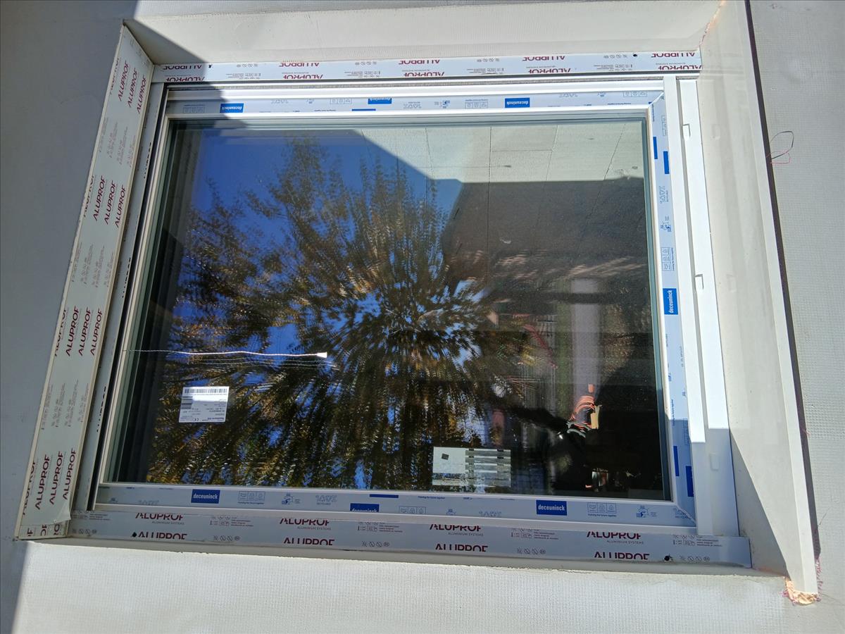 -A nyílászárók háromrétegű hőszigetelő üvegezésüek, 6 kamrás, fehér műanyag szerkezetűek.
