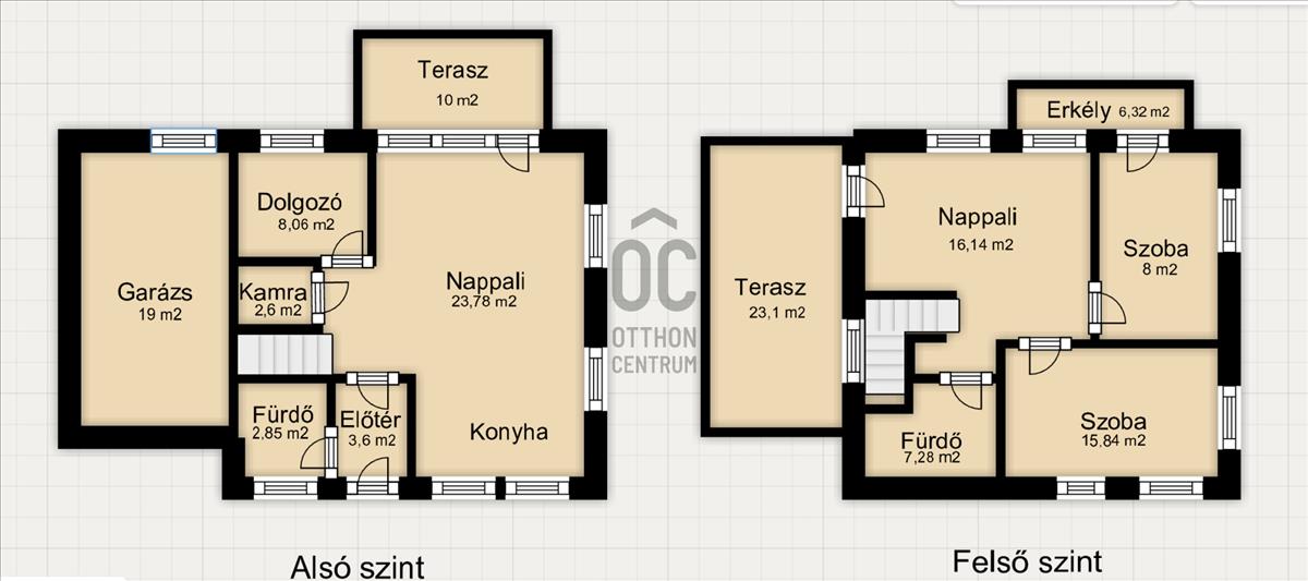 2 szintes 5 szobás, déli tájolású, extra méretű és hangulatú terasszal rendelkező Otthont.