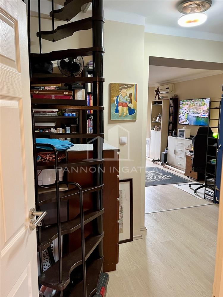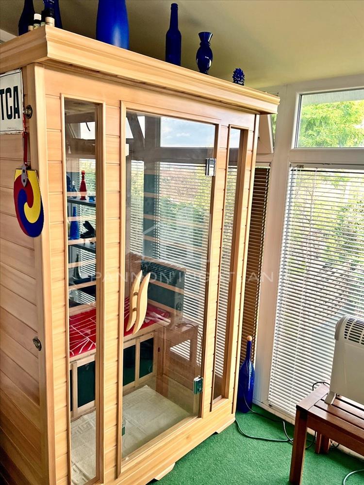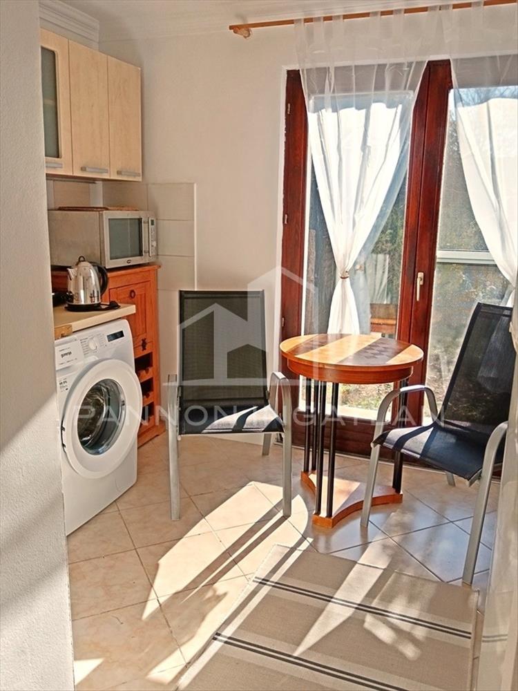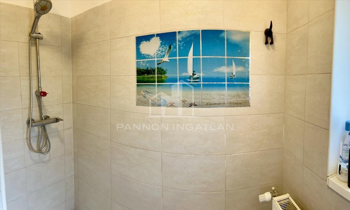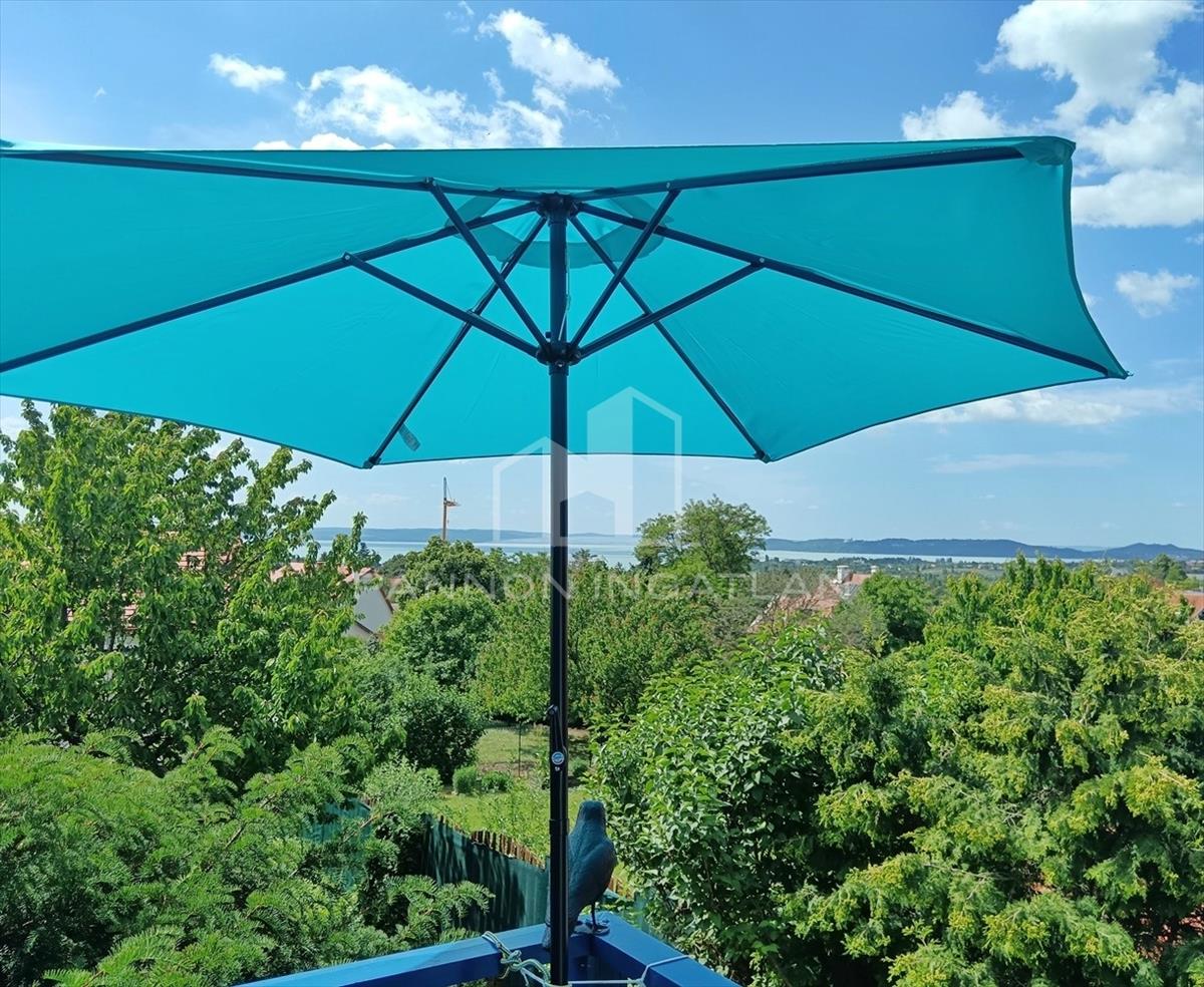 A klímával felszerelt emeleti lakás 65 nm-es, nagy nappalival, konyhával, fürdővel, hálószobával, télikerttel, infraszaunával, tetőtéri szobával és pazar tihanyi panorámás terasszal rendelkezik.