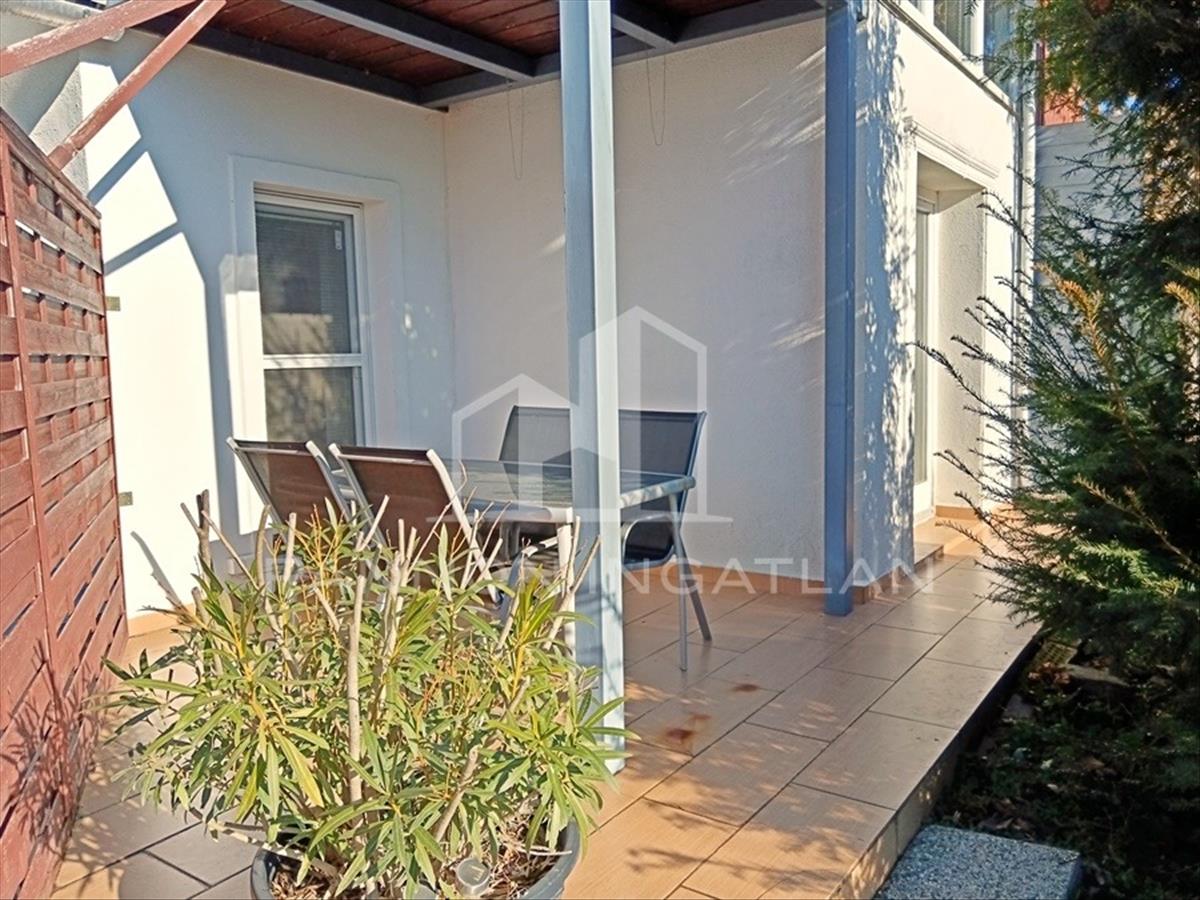 A lenti lakás 48 nm alapterületű, előtér, hálószoba, konyha, fürdőszoba, jó méretű nappali szoba és szintén saját terasz került kialakításra.