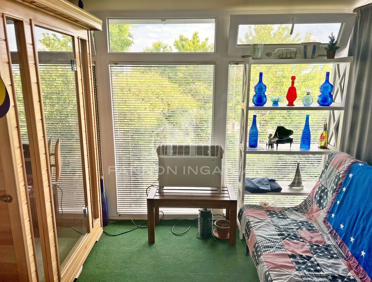 Az alpesi jellegű, szigetelt 40m2-es galériás faház a kert végében helyezkedik el, saját kis kertrésszel. 2015 Óta folyamatos felújításon esett át úgy, mint homlokzati szigetelés, új tetőborítás, alatta üveggyapot szigetelés, belső burkolatok, új csatorna és vízvezeték. Itt külön kis villanybojler szolgáltatja a melegvizet, a kisház külön almérővel rendelkezik! a teljes gépesítés és bútorzata a vételár részét KÉPEZI!