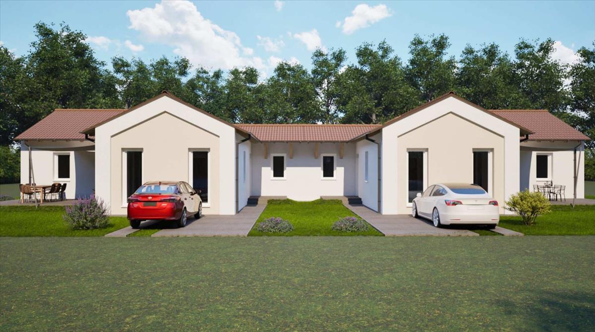 Minőségi kivitelezőtől eladó új építésű csak tárolónál érintkező ikerházfél Csörög fejlődő új építésű lakóparkjában!