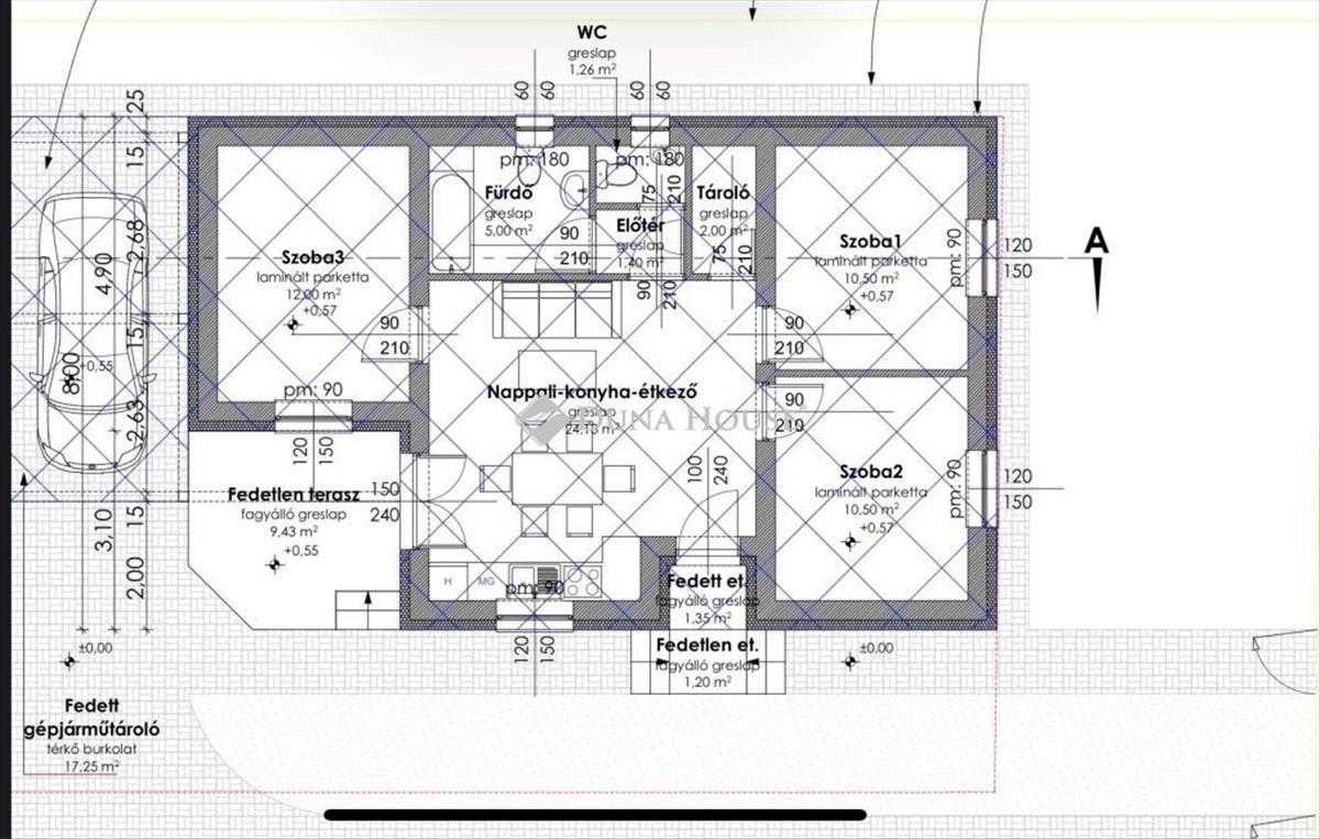 KÖZÖS fal nem érintkezik, fedett gépkocsitároló a kettő lakás KÖZÖTT.