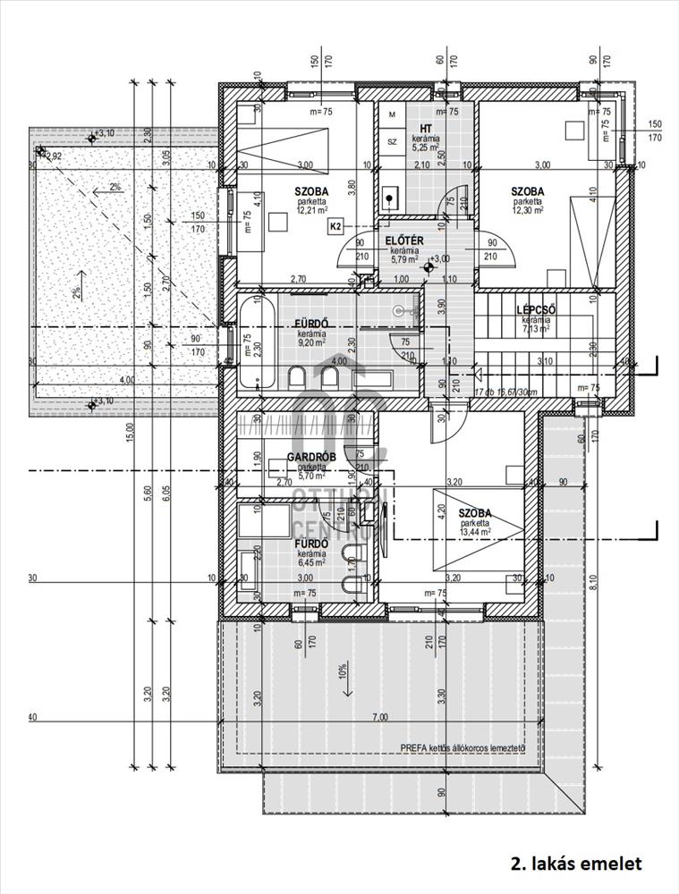 Az ikerházak 2. Lakása: 190nm alapterületű, nappali + 4 szobás, 600 nm-es telekrésszel.