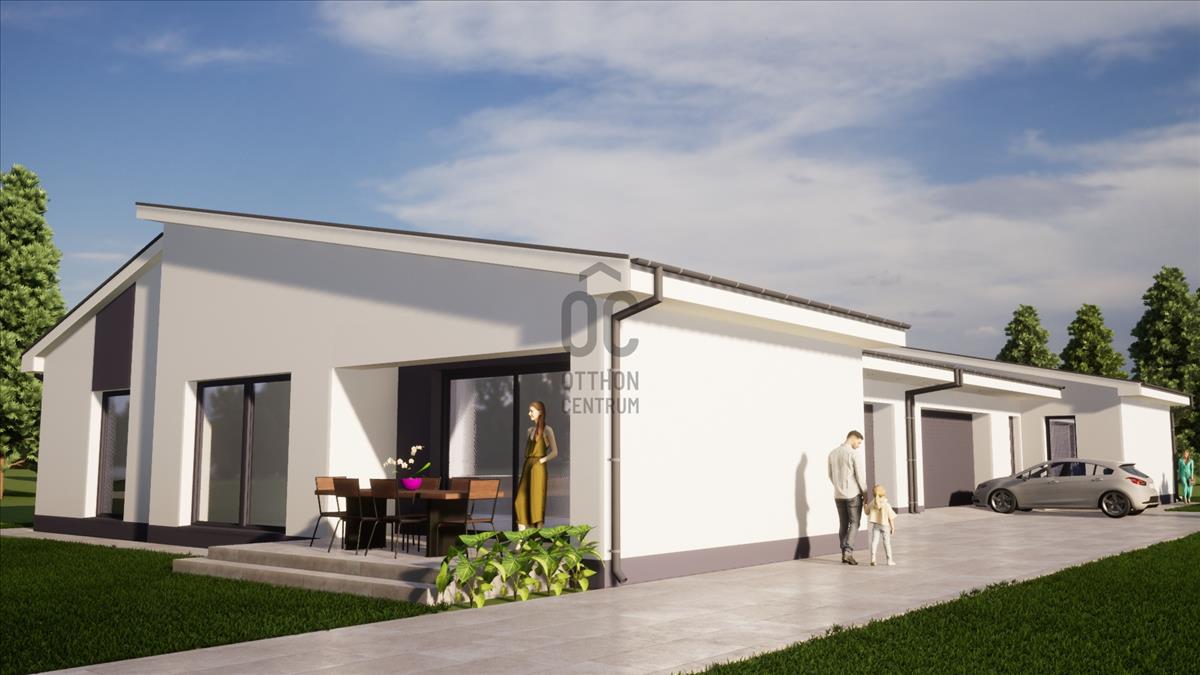 Eladó Nagymacson, a BMW-től 1 percre, új építésű, 157 m2-es, nappali-amerikai konyha-étkező + 4 külön nyíló szobás, dupla garázsos ikerház, 660 m2 telekkel, az alábbiak szerint:> földszintes kivitelezésben, nagy és világos terek