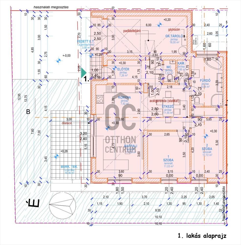 1. lakás 108 nm számított alapterülettel: (80nm + 20nm + 18nm)...