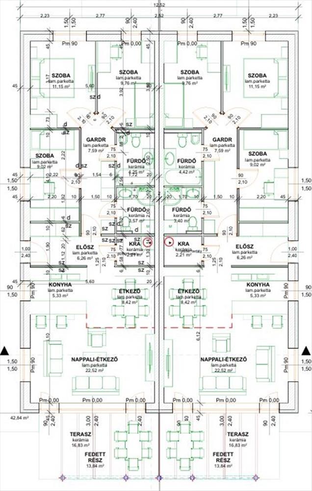 Igényesen kialakított fürdőszobák, 14 nm -es fedett, 15 nm -es fedetlen terasz és 20, 5 nm -es garázs biztosítja a teljes kényelmet.