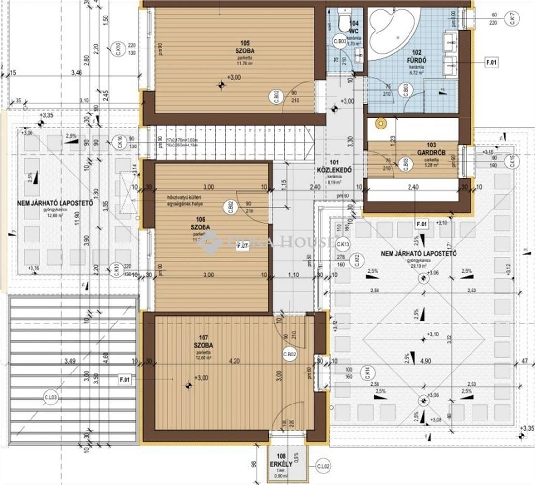 Burkolatok: magas minőségű kerámia padló és falburkolatok valamint laminált parketta